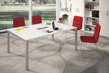 Progettato per essere altamente modulare, Arko consente di progettare gli spazi per le riunioni in base alle proprie esigenze. La sua struttura autoportante garantisce una perfetta rigidità, mentre i piani antigraffio e antiriflesso assicurano durata ed estetica. E per una maggiore praticità, i piani della scrivania sono preforati, in modo da poter aggiungere facilmente tapparelle o prese elettriche.