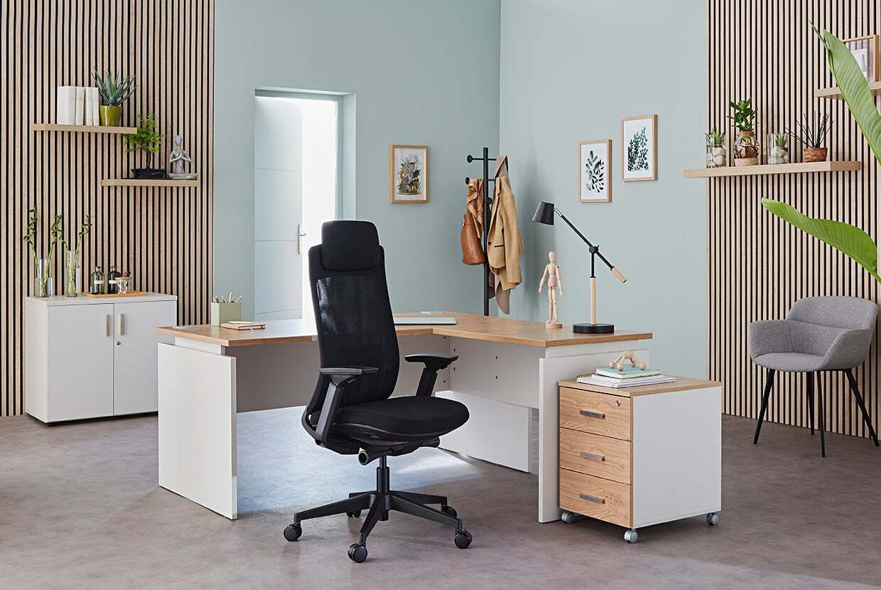 La gamma Intuitiv' offre numerose soluzioni di archiviazione, tra cui scrivanie, armadi, piedistalli, consolle, tavoli da riunione e librerie. Combinando ergonomia e praticità, consente di regolare l'altezza della scrivania in 3 posizioni e le sue canaline sono perfette per fare ordine. I mobili contenitori Intuitiv' sono compatibili con le gamme Eden ed Eden Arche.