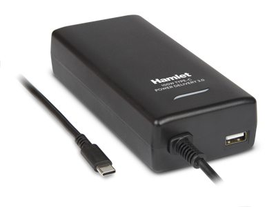 Hamlet USB Type-C Notebook Charger 100W is a universal power adapter that offers efficient and fast charging for laptops and mobile devices such as smartphones and tablets equipped with USB-C port. USB-C Power Delivery technology automatically detects the connected device and delivers the exact power required for fastest charging. The power adapter is also equipped with a USB-A port that allows you to charge other devices with a maximum power of 12W.