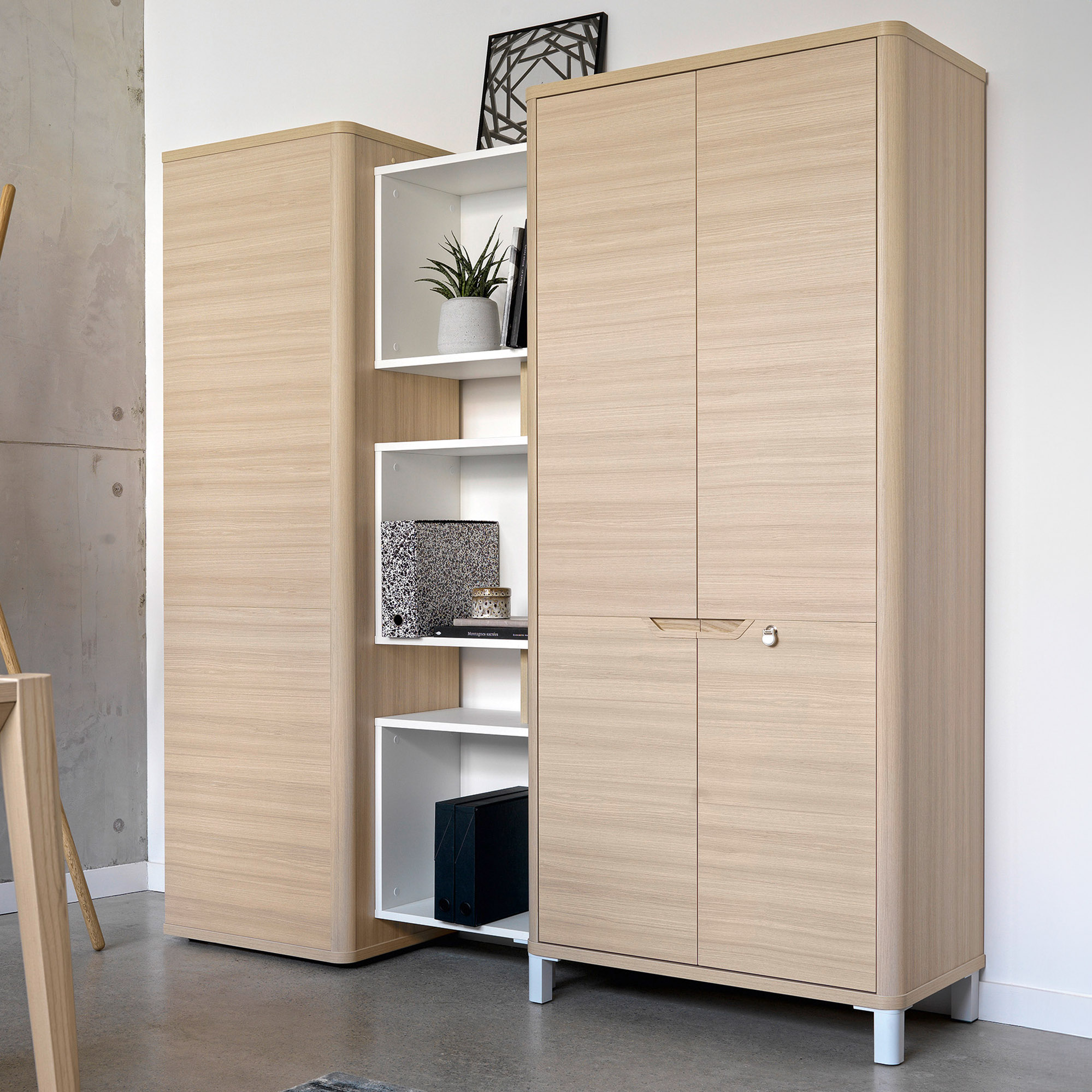 La perfetta combinazione di melamina testurizzata e legno massiccio aggiungerà un'atmosfera calda al vostro spazio di lavoro.