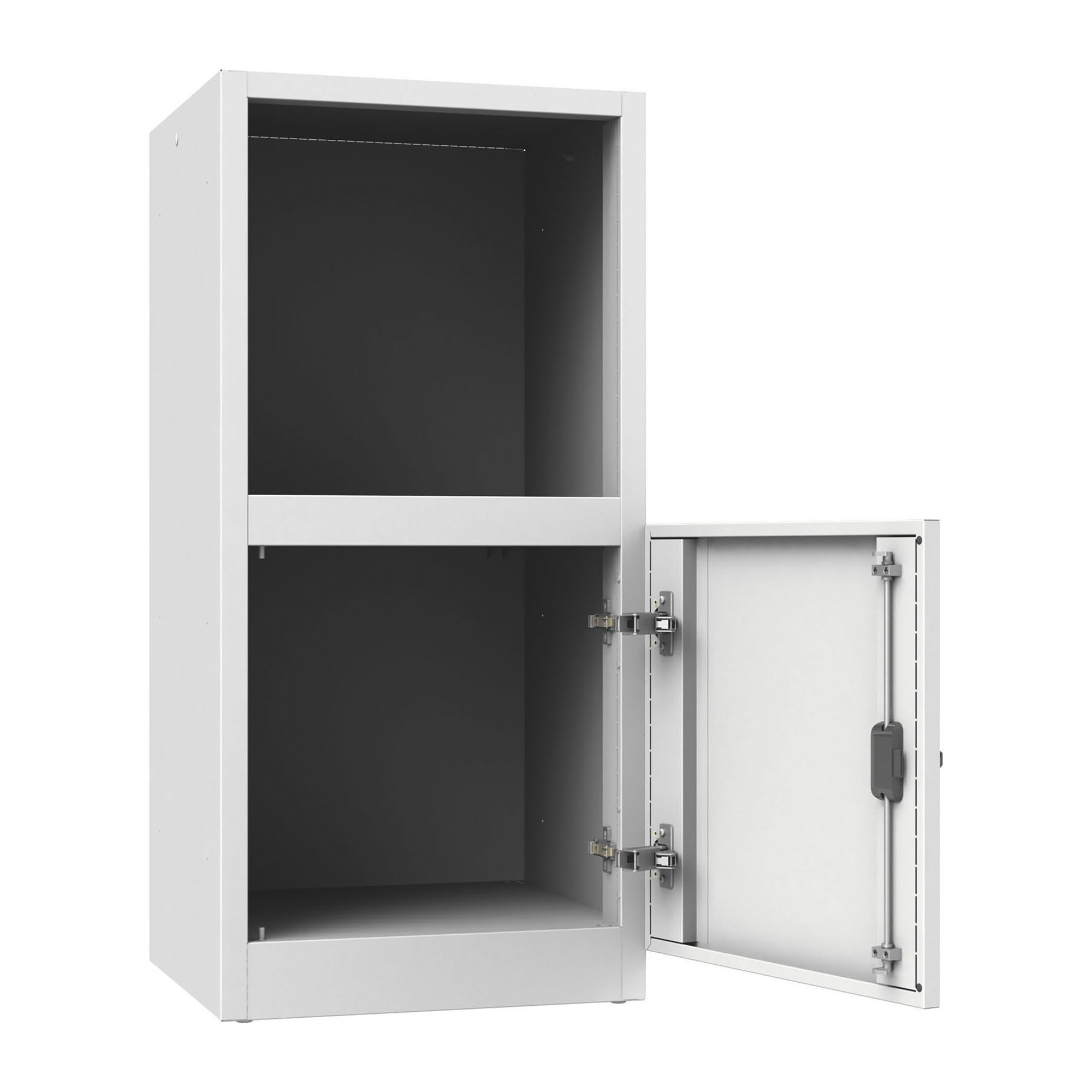 Anta a battente dotata di 2 cerniere interne ammortizzate con rotazione a 135°, canottatura di rinforzo sui due lati e pieghe antitaglio su tre ordini sui lati rimanenti.