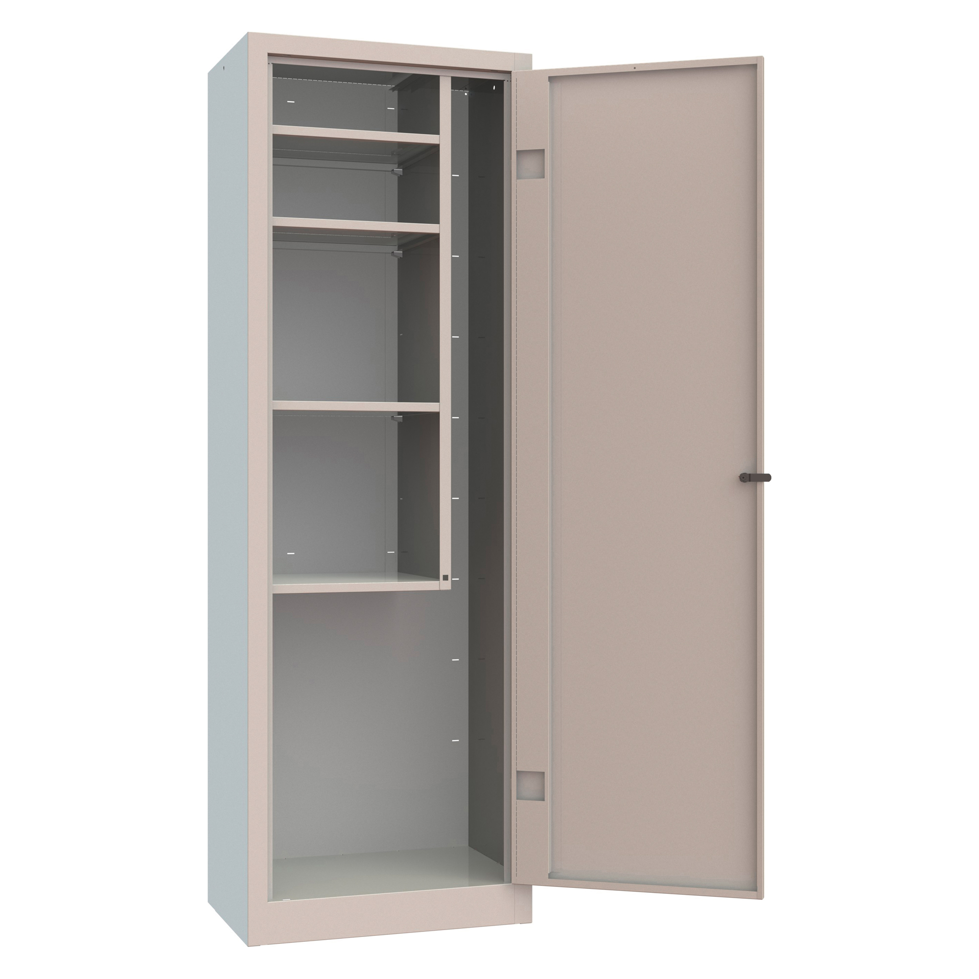 Base su zoccolo in acciaio, h. 100 mm. Corpo formato da pannellature spessore 6/10 elettrosaldate,