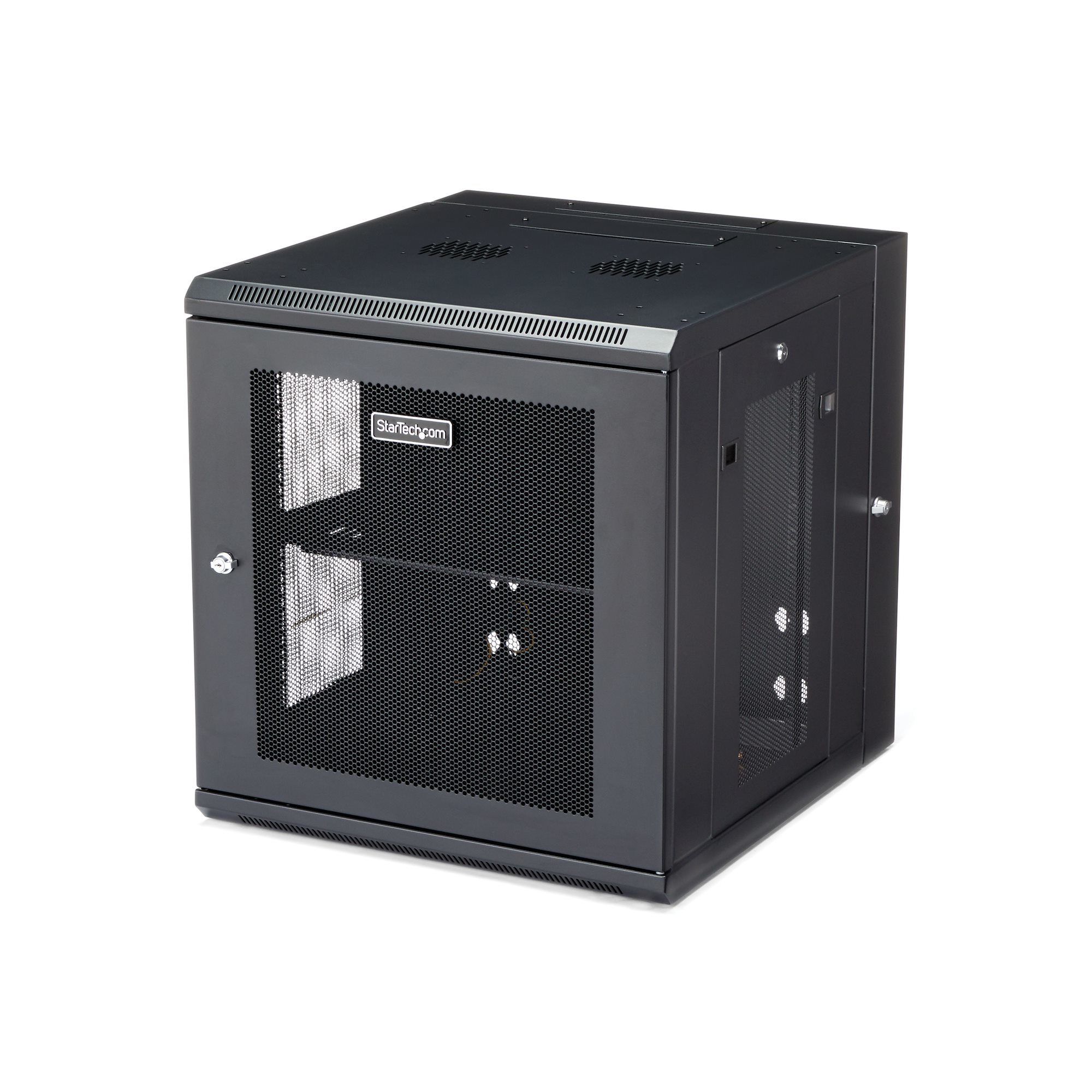 The 12U network cabinet features a removable and reversible front door and removable side panels, each with quick-release mechanisms, so you can easily access your equipment. Plus, each door and panel on this rack features an independent lock, ensuring your equipment is secure.