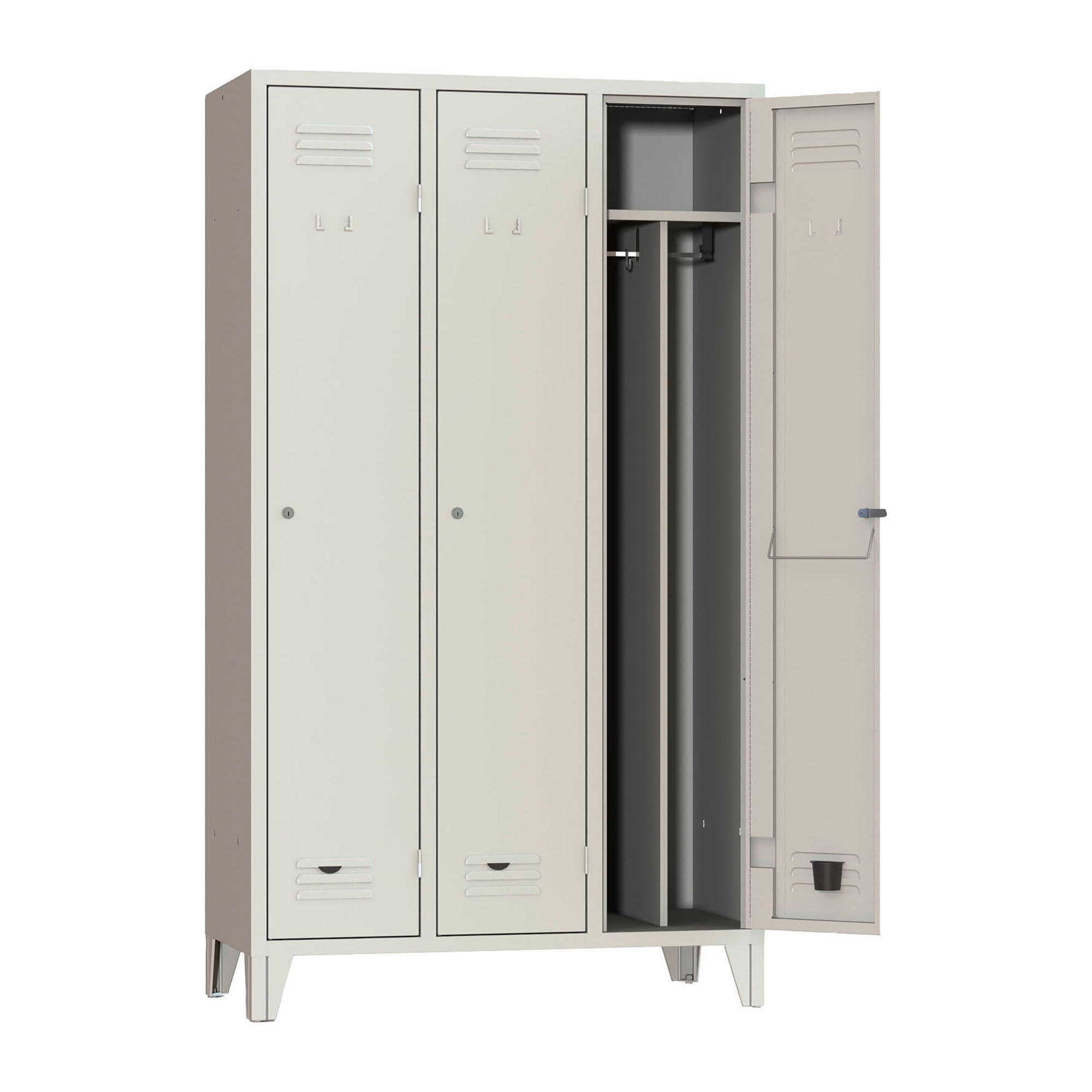 zincato. Divisorio metallico tra il ripiano e il fondo. Filo porta ombrelli/asciugamani in tondino