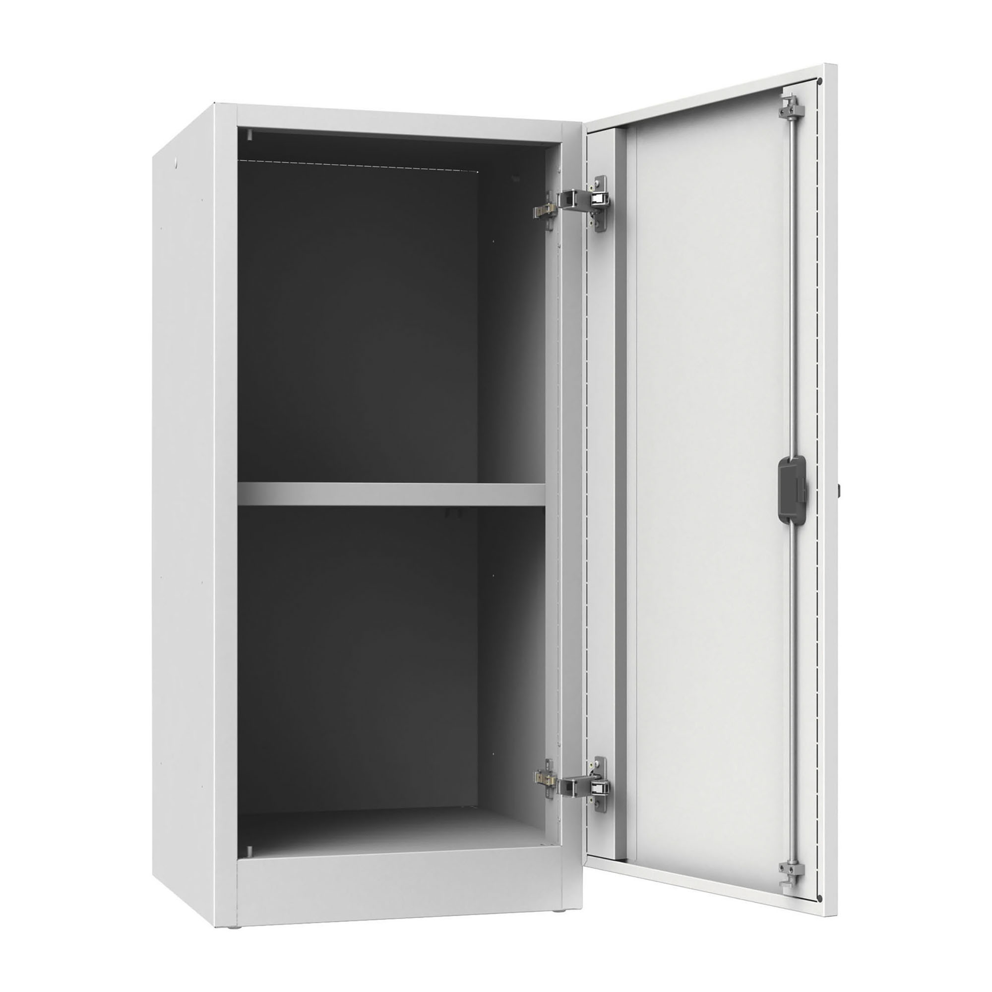 Allestimento interno 1 piano mobie su cremagliera supportate da 4 mensoline in acciaio antisfilamento.