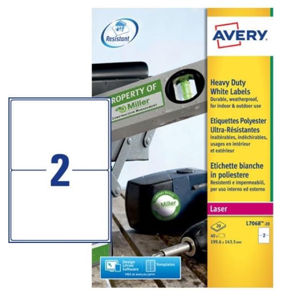 Etichette in poliestere bianco. Etichette in poliestere, resistono all'acqua, allo sporco, agli strappi e ai raggi UV, alle temperature da -20°C a +80°C. Possono essere applicate su metallo, vetro, plastica e legno. Ideali per uso esterno. Alcuni formati sono conformi GHS per l'etichettatura delle sostanze chimiche. Confezione da 20fg in A4.