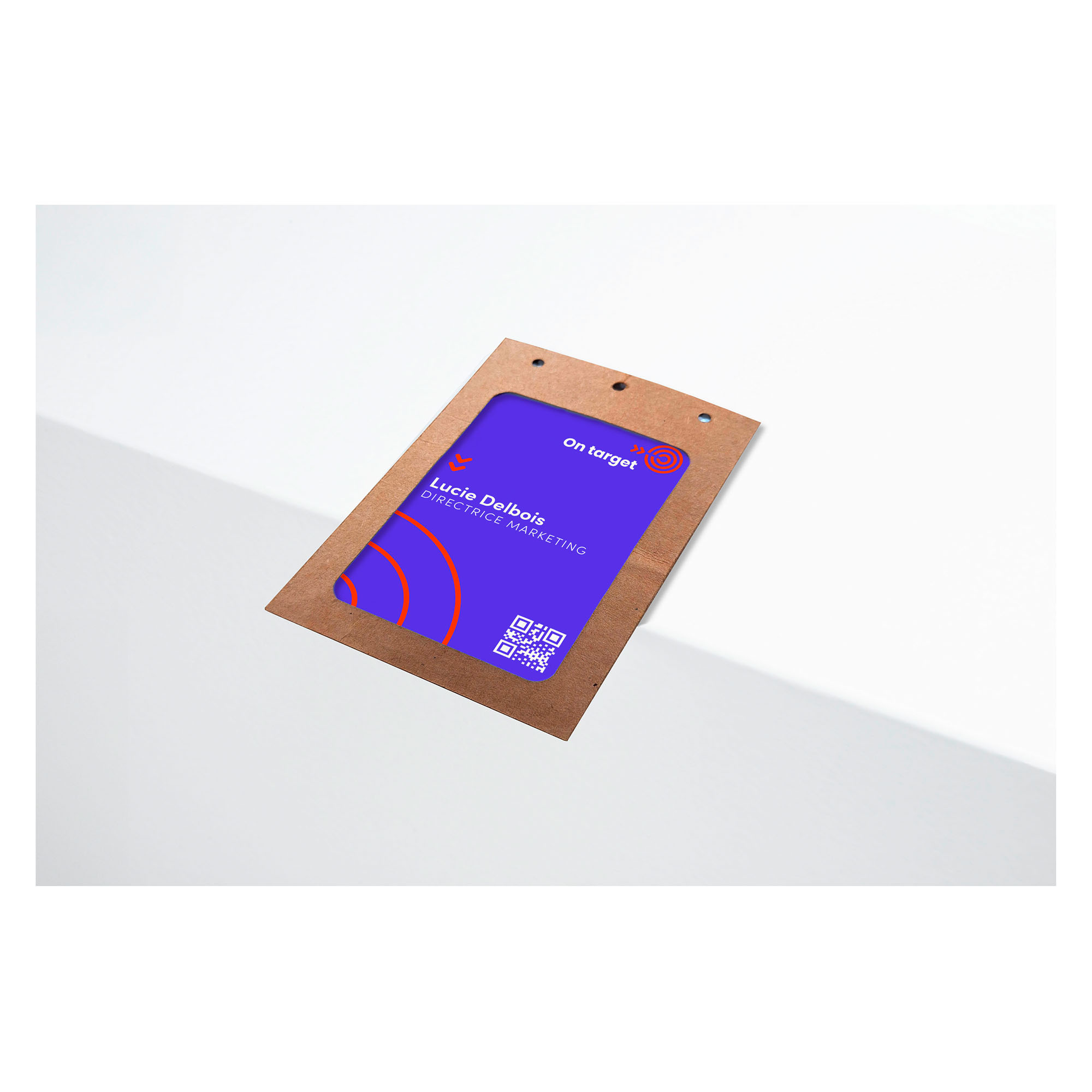 Porta badge A6 in cartoncino certificato FSC®, formato 105 x 148 mm, Inserti in carta certificata FSC® inclusi nella confezione, 50 Porta badge per confezione