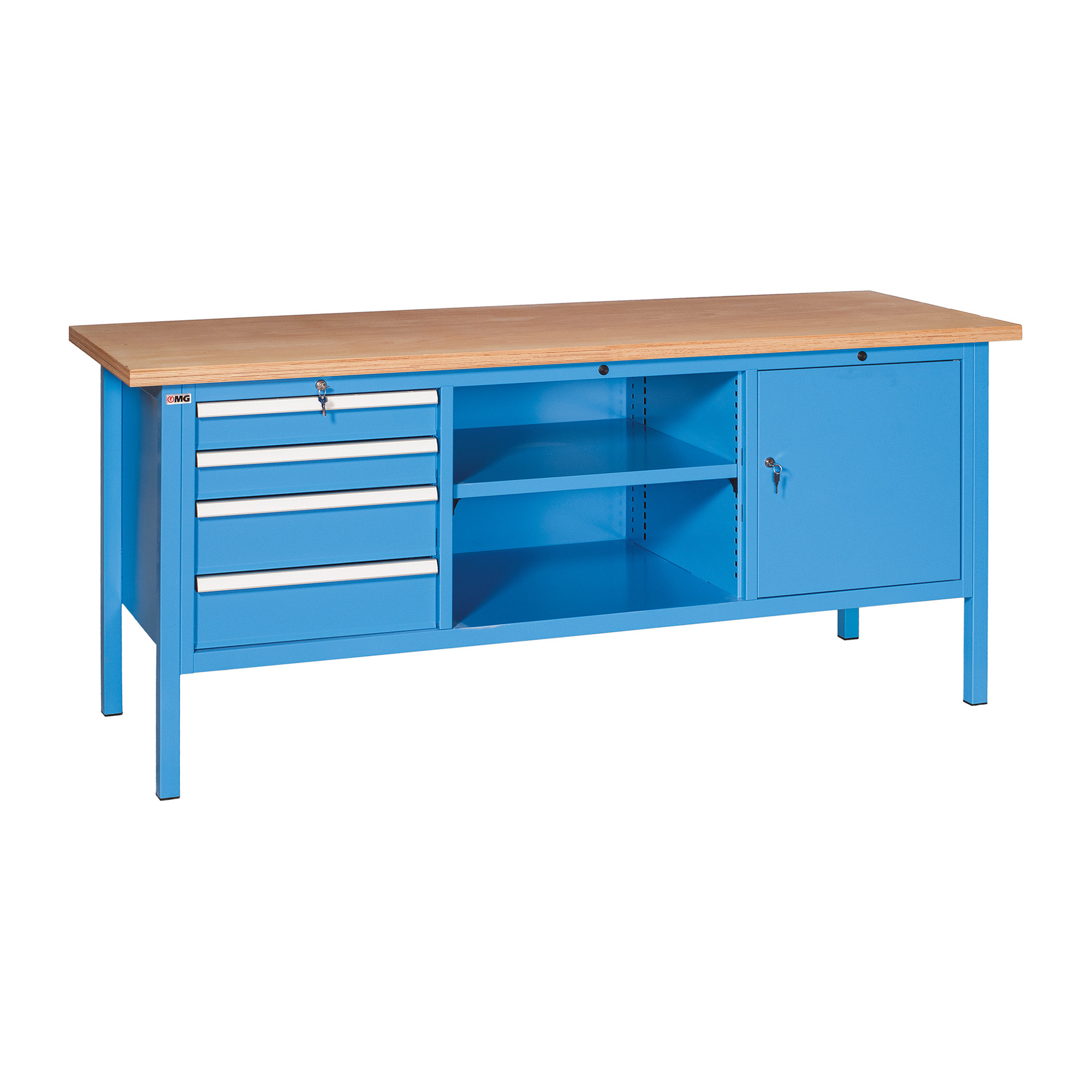 Banco da lavoro BX 200 01 con 4 cassetti, vano a giorno e vano con anta, 2000 x 700 x 870 mm