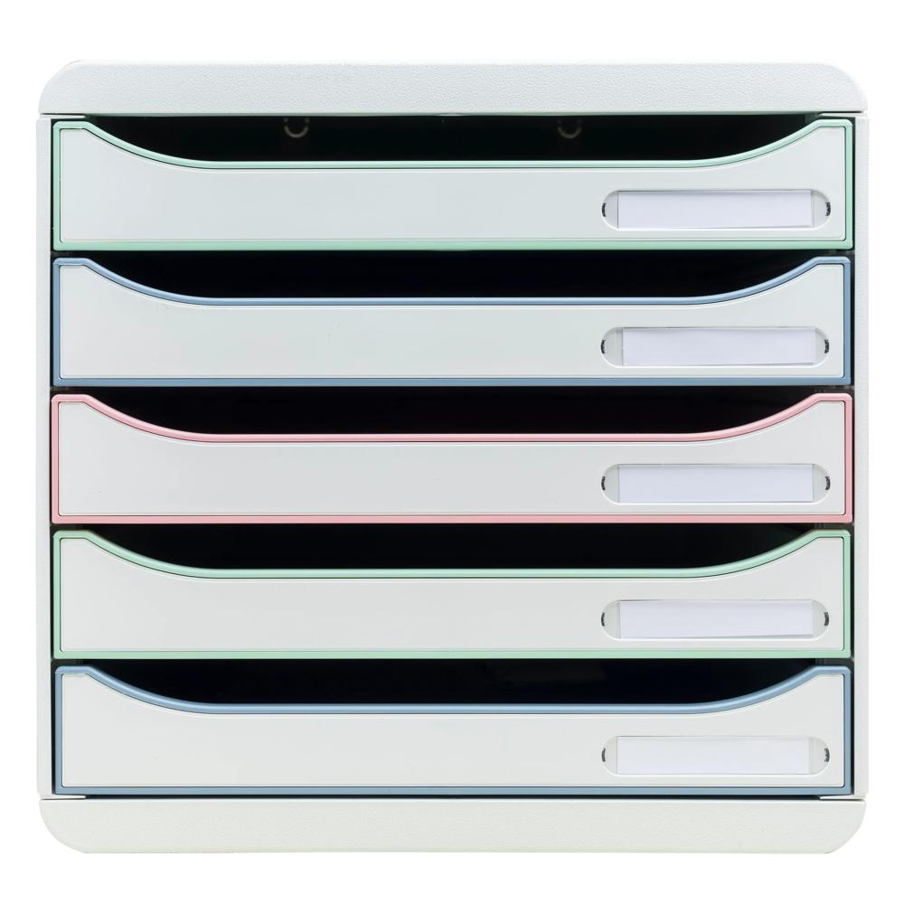 The Big Box Plus filing unit features 5 drawers for filing A4 and A4+ format documents, 24x32cm elasticated pockets or large format envelopes. This product has a simple and very ergonomic design and is suitable for the workplace, home office or school.