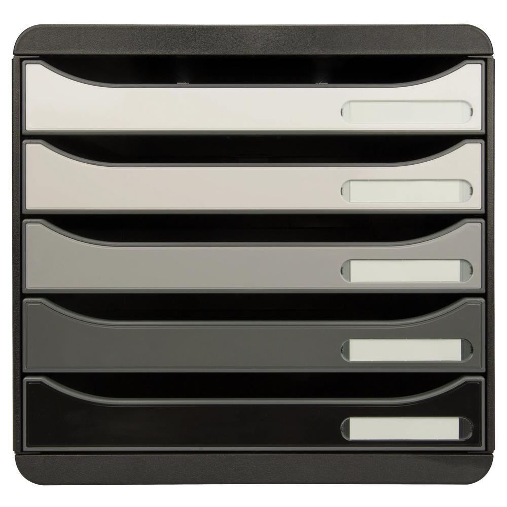 Detailled descriptionBIG-BOX PLUS -Drawer set with 5 drawers, Grey Drawer set with 5 drawers of 43mm for storage of A4+ documents. Single piece housing which allows high load. Stackable through 4 notches. Open drawers allows you to store documents without opening.