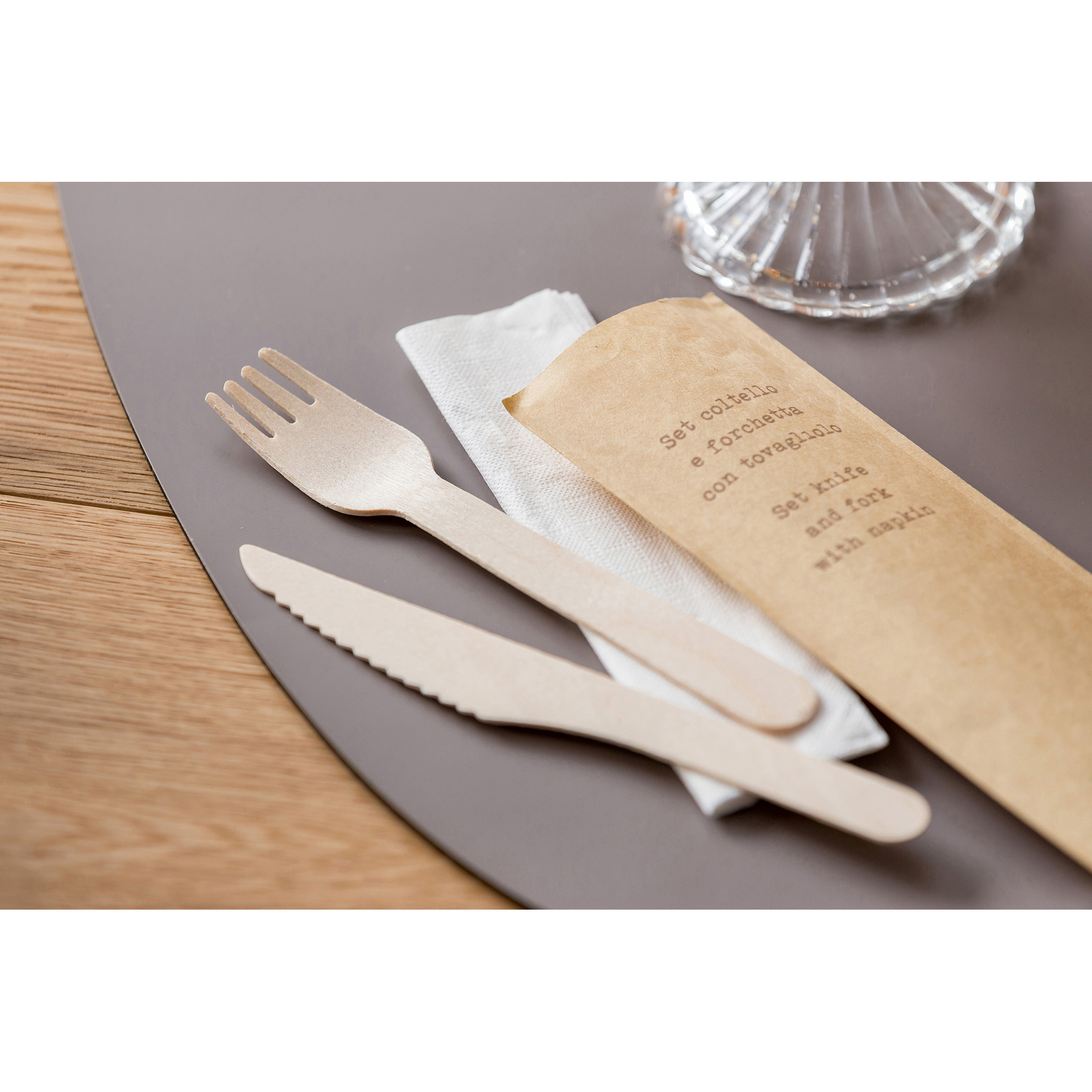 Bis in legno forchetta, coltello tovagliolo bio 16 cm.