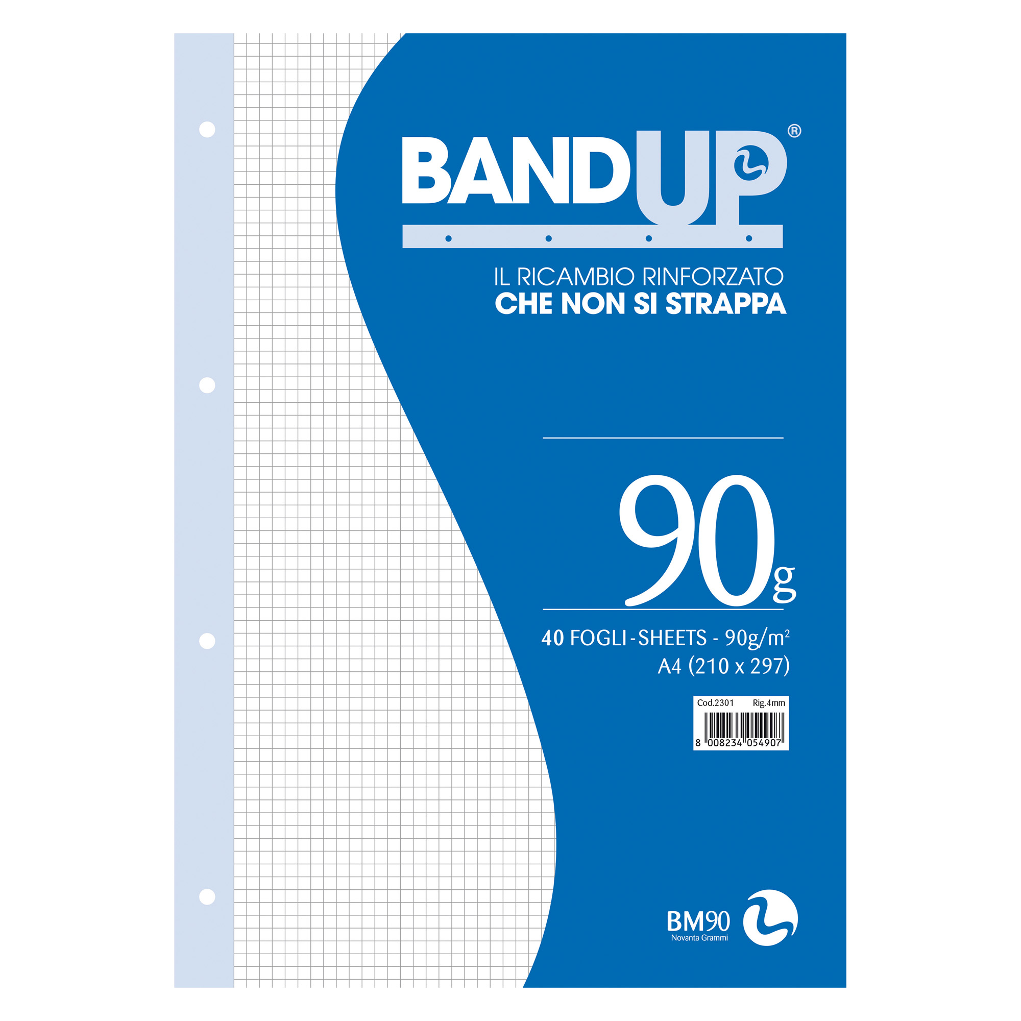 Detailled descriptionIl ricambio rinforzato che non si strappa. Contiene 40 fogli singoli in carta da 90 g/m2 con perforatura rinforzata antistrappo. Ricambi rinforzati Bund Up A4.