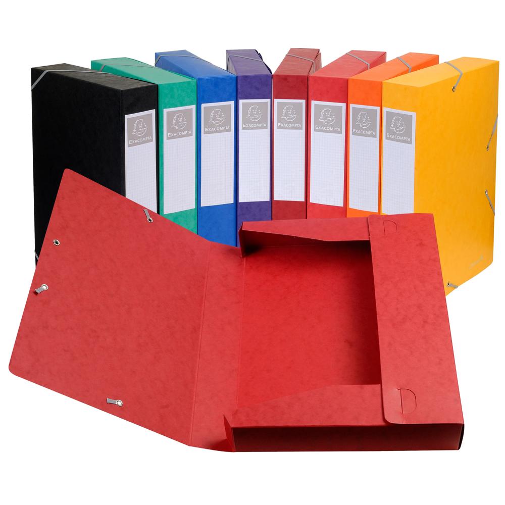 Elastic straps on 2 corners to keep the box closed when not in use and has a label on the spine for easy identification.