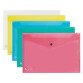 Buste in polipropilene, chiusura con bottone a pressione che impedisce la fuoriuscita accidentale della documentazione.