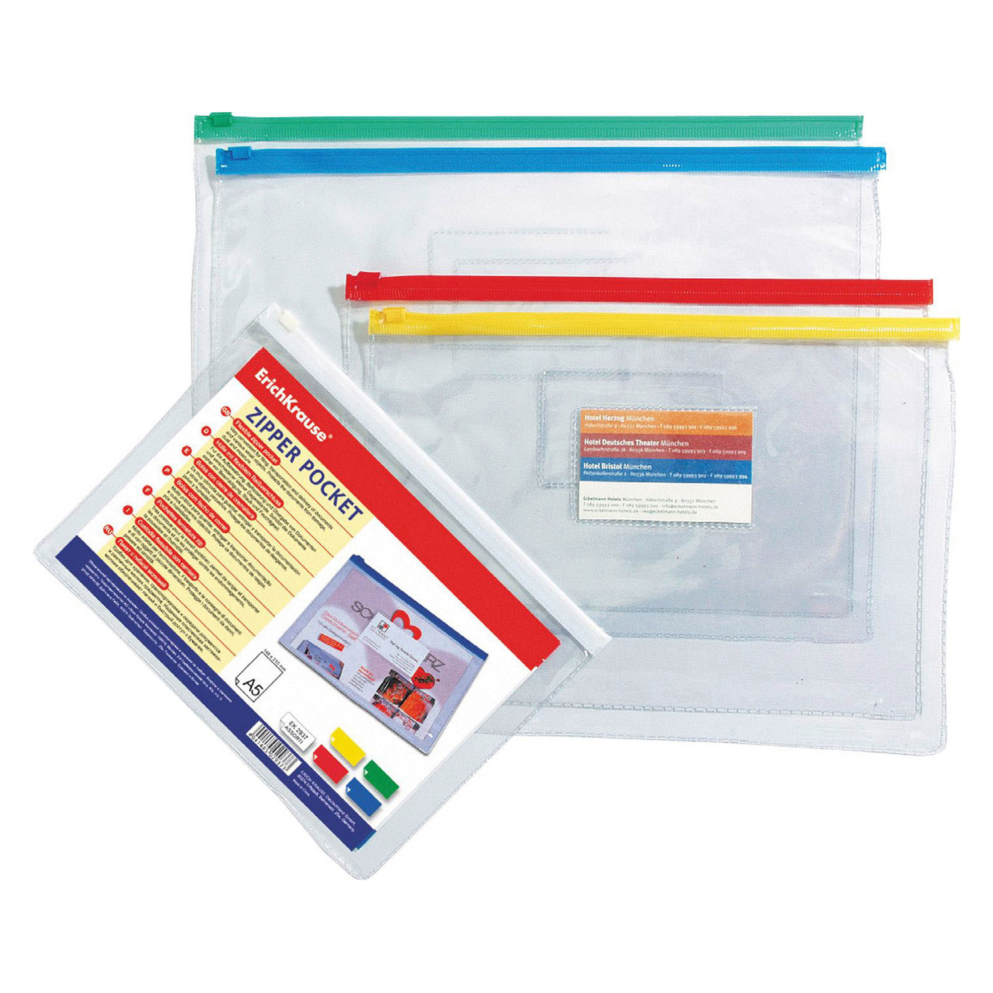 La busta con zip A5 è realizzata in plastica trasparente di alta qualità con una superficie a "specchio", sulla quale non sono visibili impronte digitali e piccoli graffi.