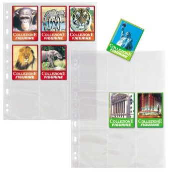 Detailled descriptionPicture-cards holder pockets with universal multi-punched made of smooth texture PP. Provided with 9 compartments for holding picture-cards.