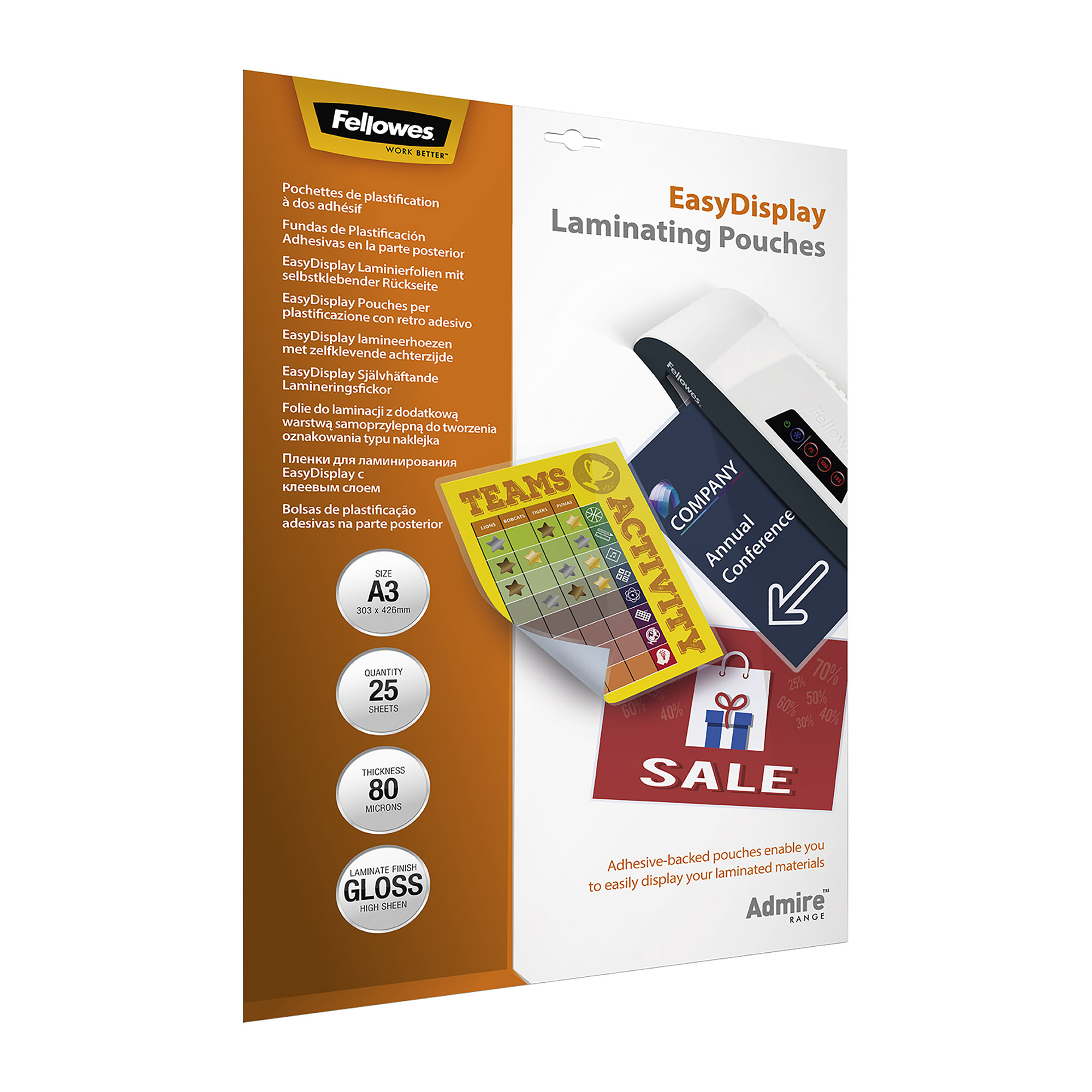 Buste Pouches per plastificazione Fellowes A3 125 micronfinitura lucida con retro adesivo in conf. da 25 pz