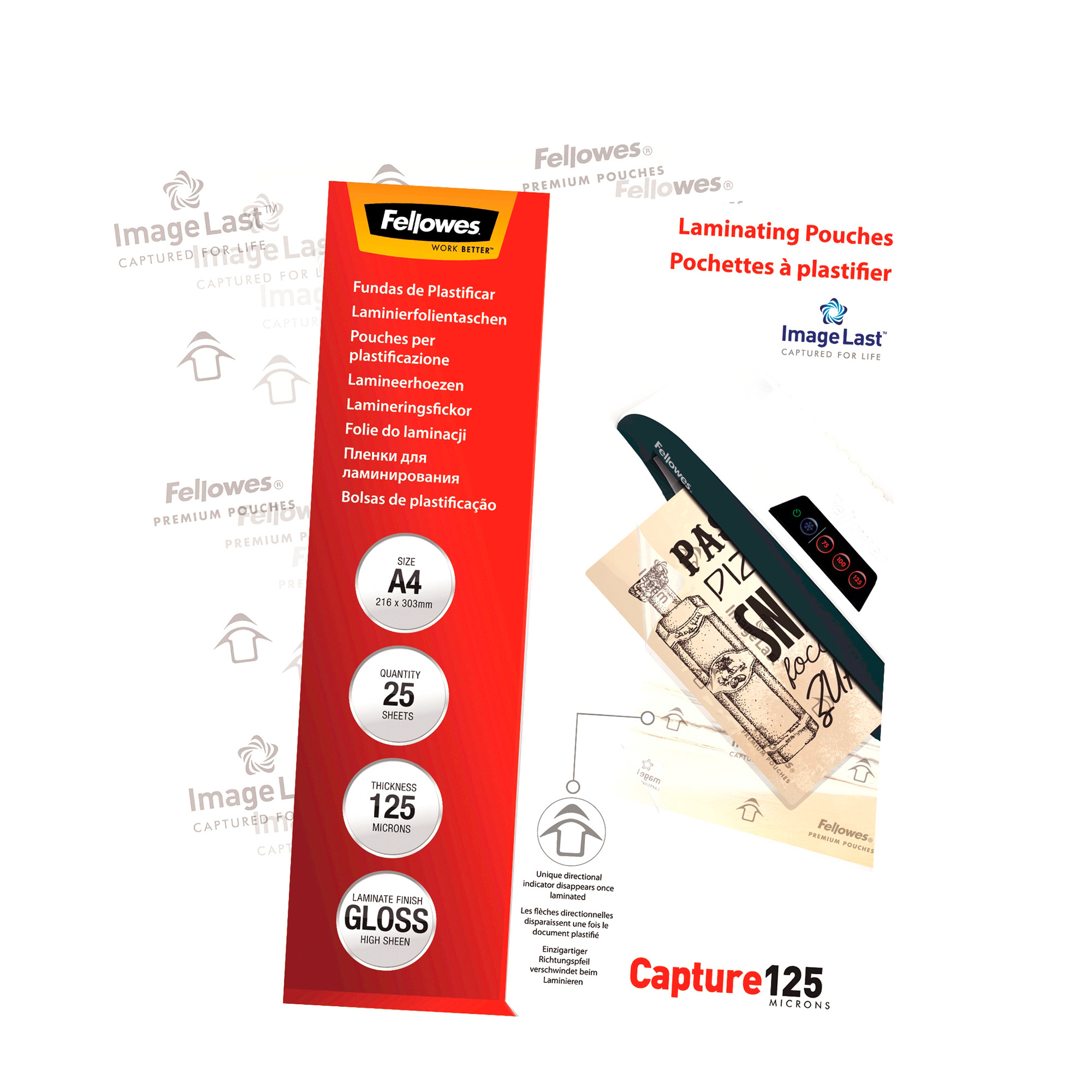 Detailled descriptionPouches per la plastificazione, spessore leggero.Per uso con plastificatrici a caldo che accettanopouches fino ad almeno 125micron di spessore (per lato).