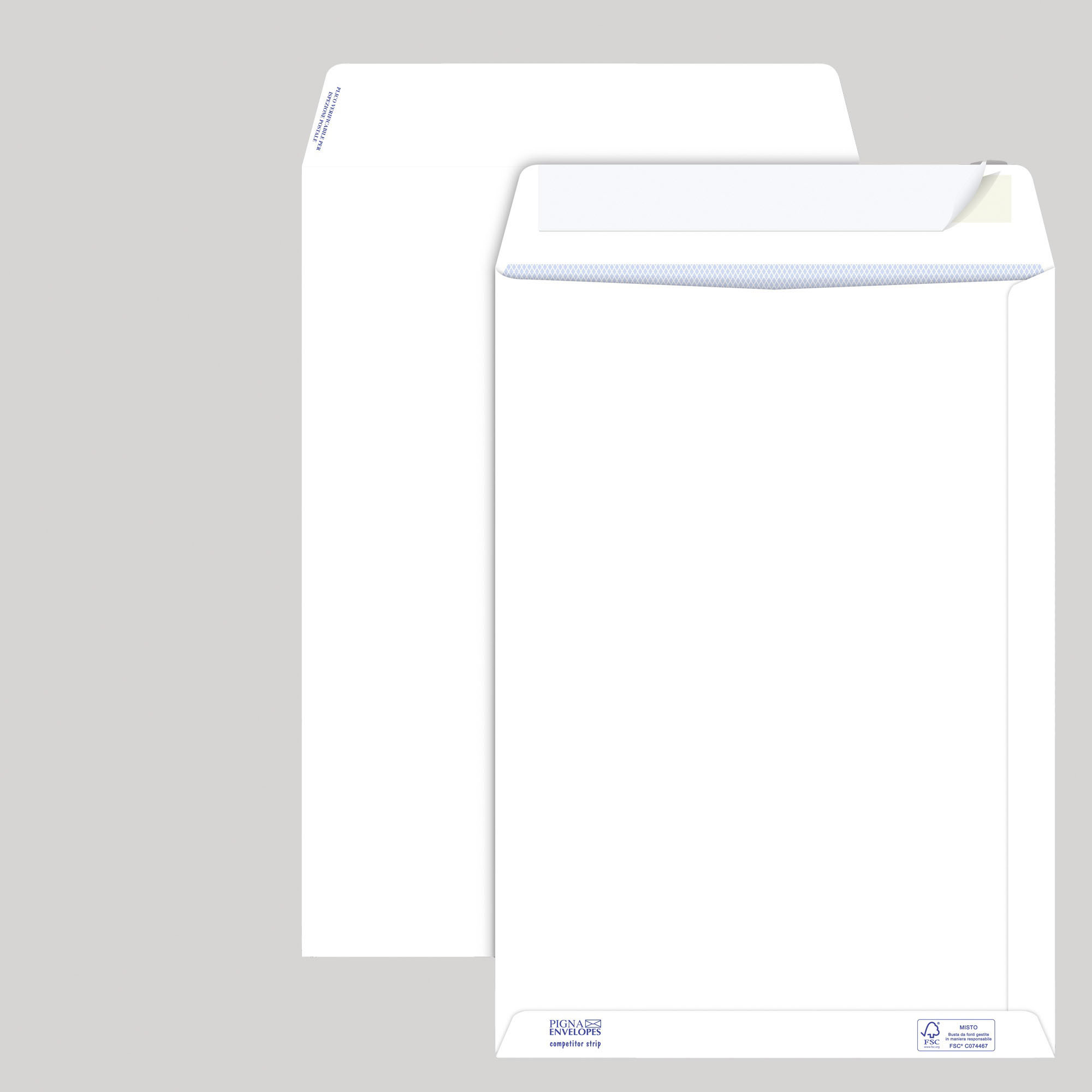 Buste realizzate in carta da 80 g/mq, internografate e dotate di strip autoadesivo.