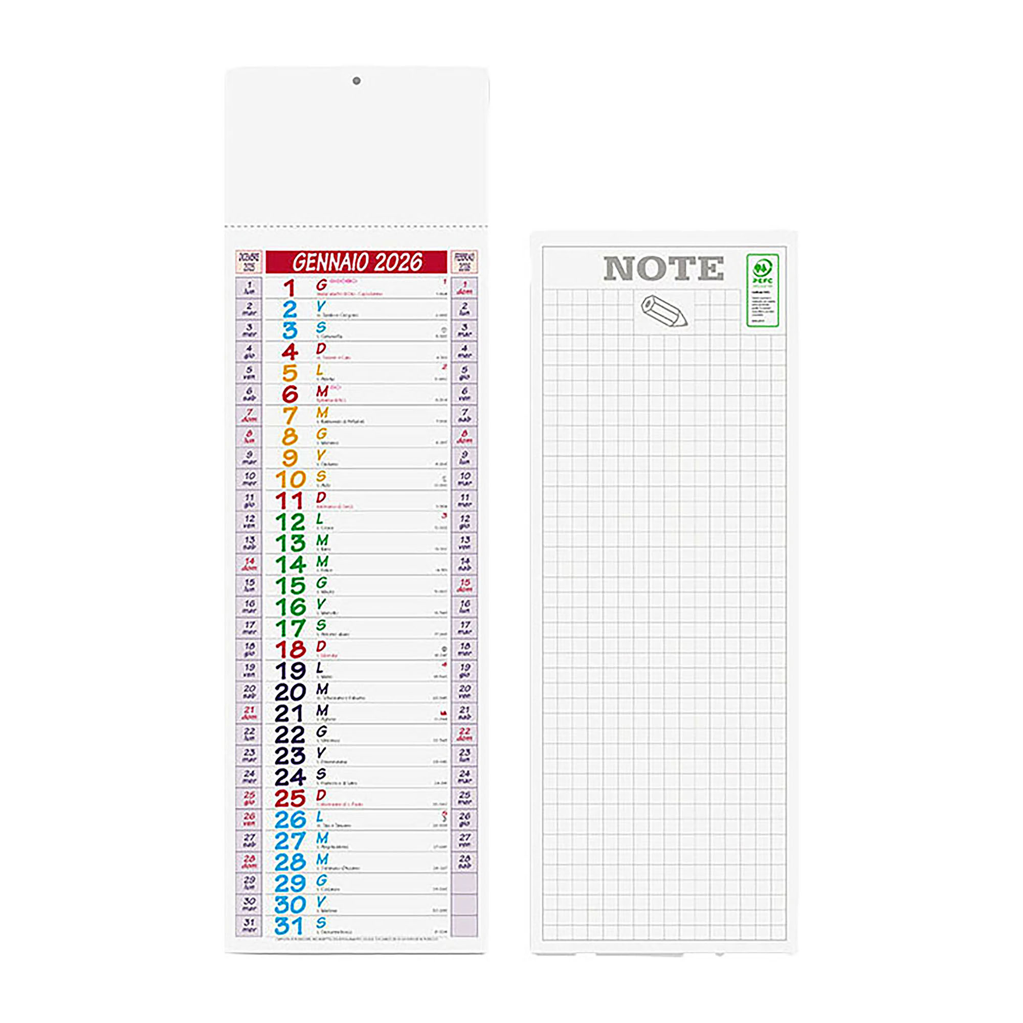 Detailled descriptionStampa su carta patinata 70 g e testata termosaldata. Pagina note sul retro. 12 fogli. Dimensioni 14x47 cm, stampa multicolore.Disponibile a partire da inizio Settembre