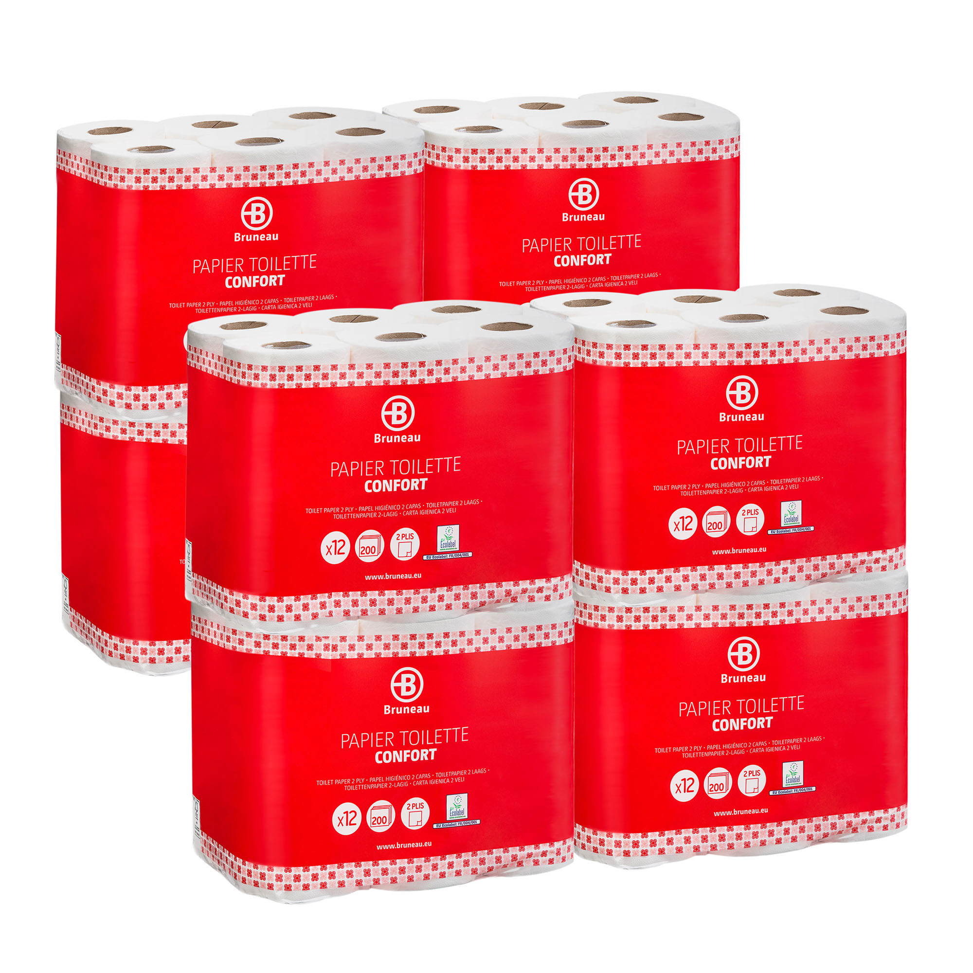 • Pratica ed economica, la confezione di carta igienica Bruneau è composta da 96 rotoli.