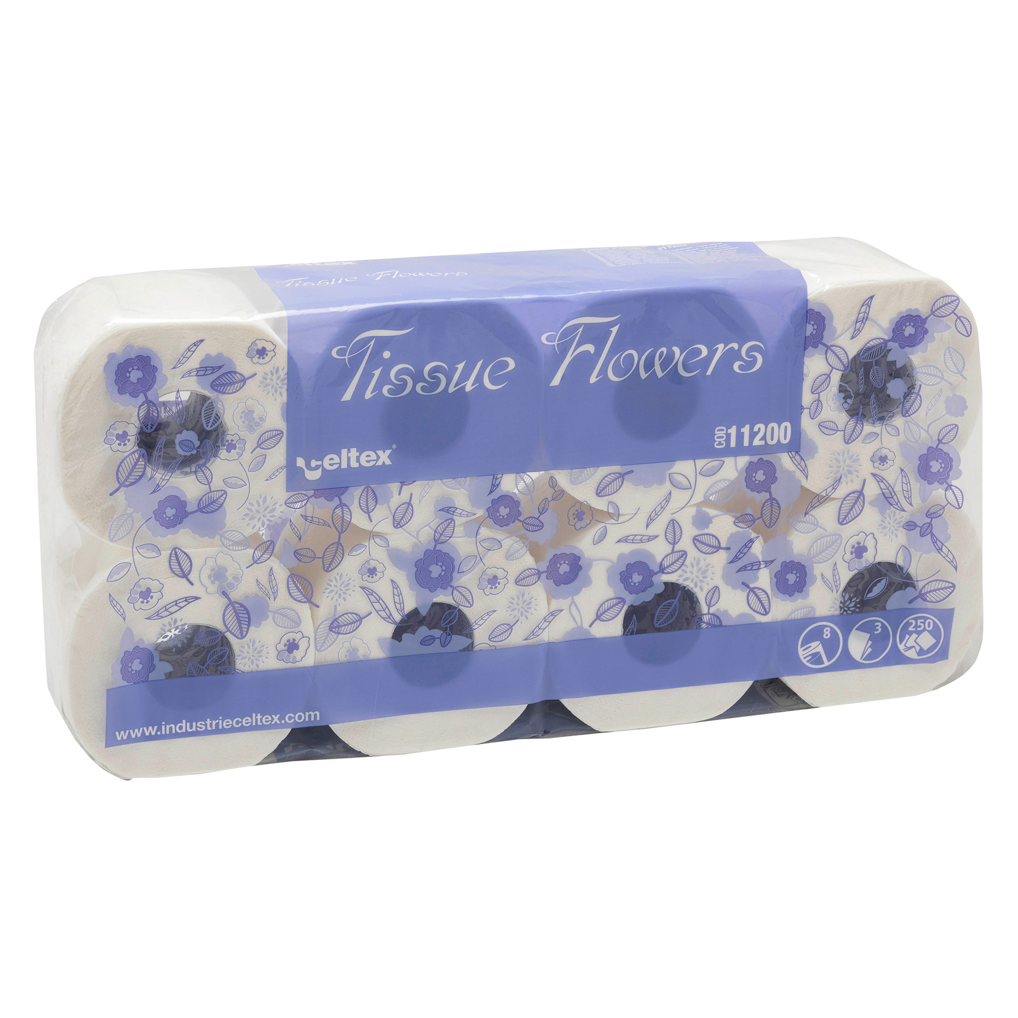 Detailled descriptionPura cellulosa, goff ratura Cotton Flower. Tecnologia brevettata Flutech: spappolabile in acqua in soli 9 secondi.250 strappi