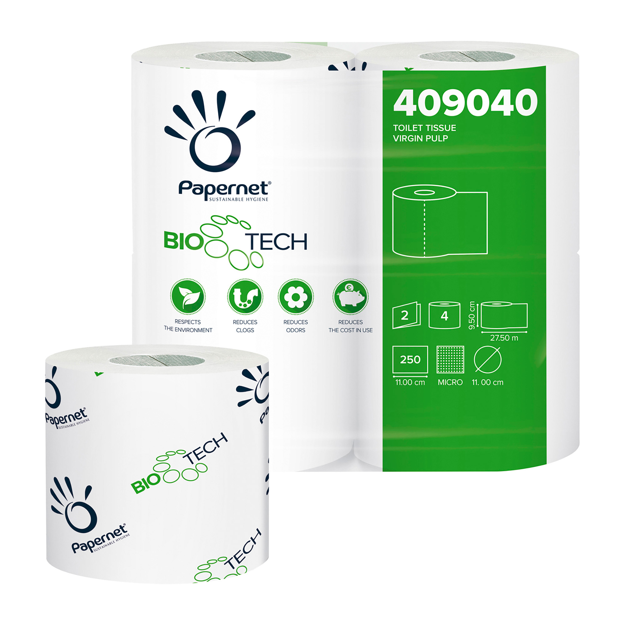 Keeping everything running smoothly in company bathrooms is essential to a well-functioning business. If you have to constantly restock the supply of toilet paper in your bathrooms, you're wasting time and slowing everbody down unnecessarily. This convenient pack of 4 rolls of Papernet toilet paper 409040 makes this a thing of the past!