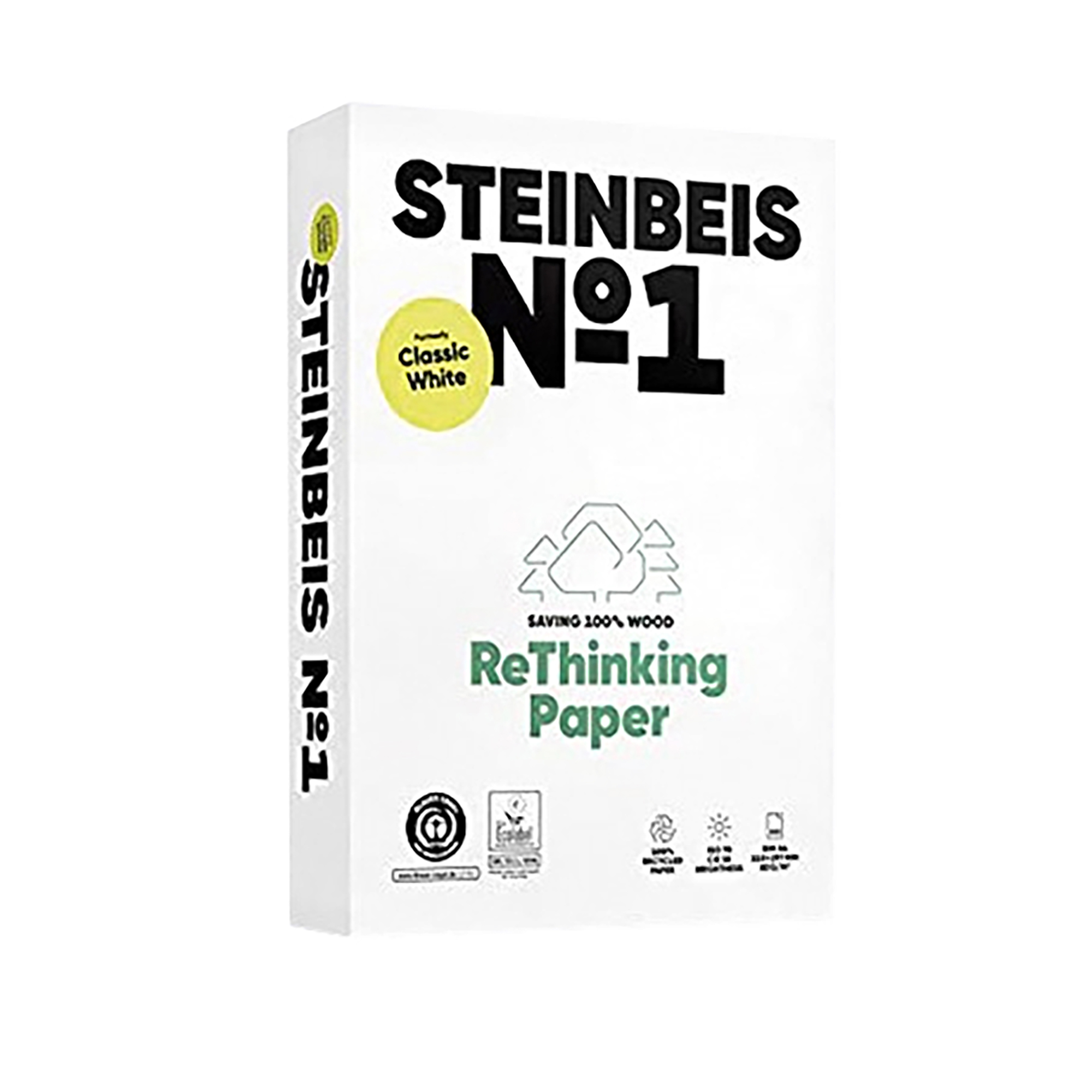 Steinbeis No. 1 è ottenuta al 100% da carta riciclata senza l’impiego di cloro o candeggianti al cloro.