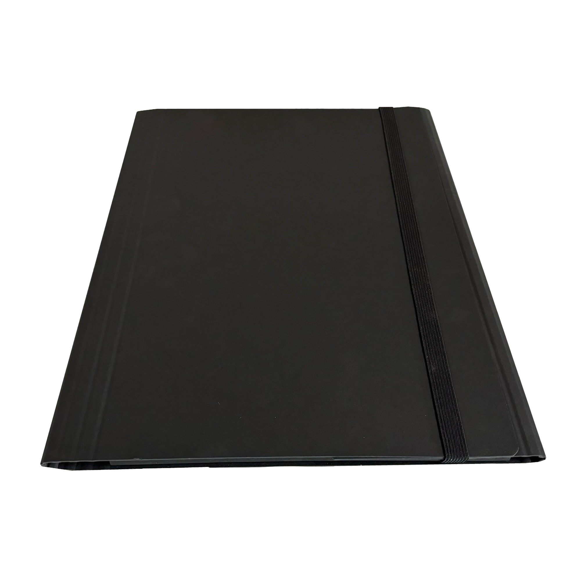 Cartellina Starline con elastico piatto in robusto presspan lucido colorato in pasta da 1.1 mm di spessore. Dorso cordonato capacità fino a 8cm. 2 alette saldamente applicate su quadrante interno mediante 2+2 rivetti. Chiusura mediante elastico piatto colorato in tinta. F.to chiuso 360x270 mm/ F.to utile 355x245mm / Dorso 8 cm variabile. Cartone certificato FSC. 6 colori disponibili: blu, giallo, rosso, verde, arancio e grigio.