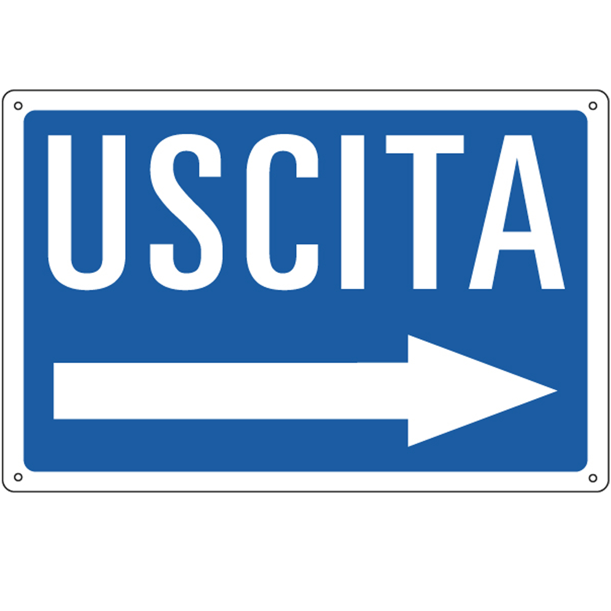 Cartello segnalatore - 30x20 cm - USCITA --> - alluminio - Cartelli Segnalatori