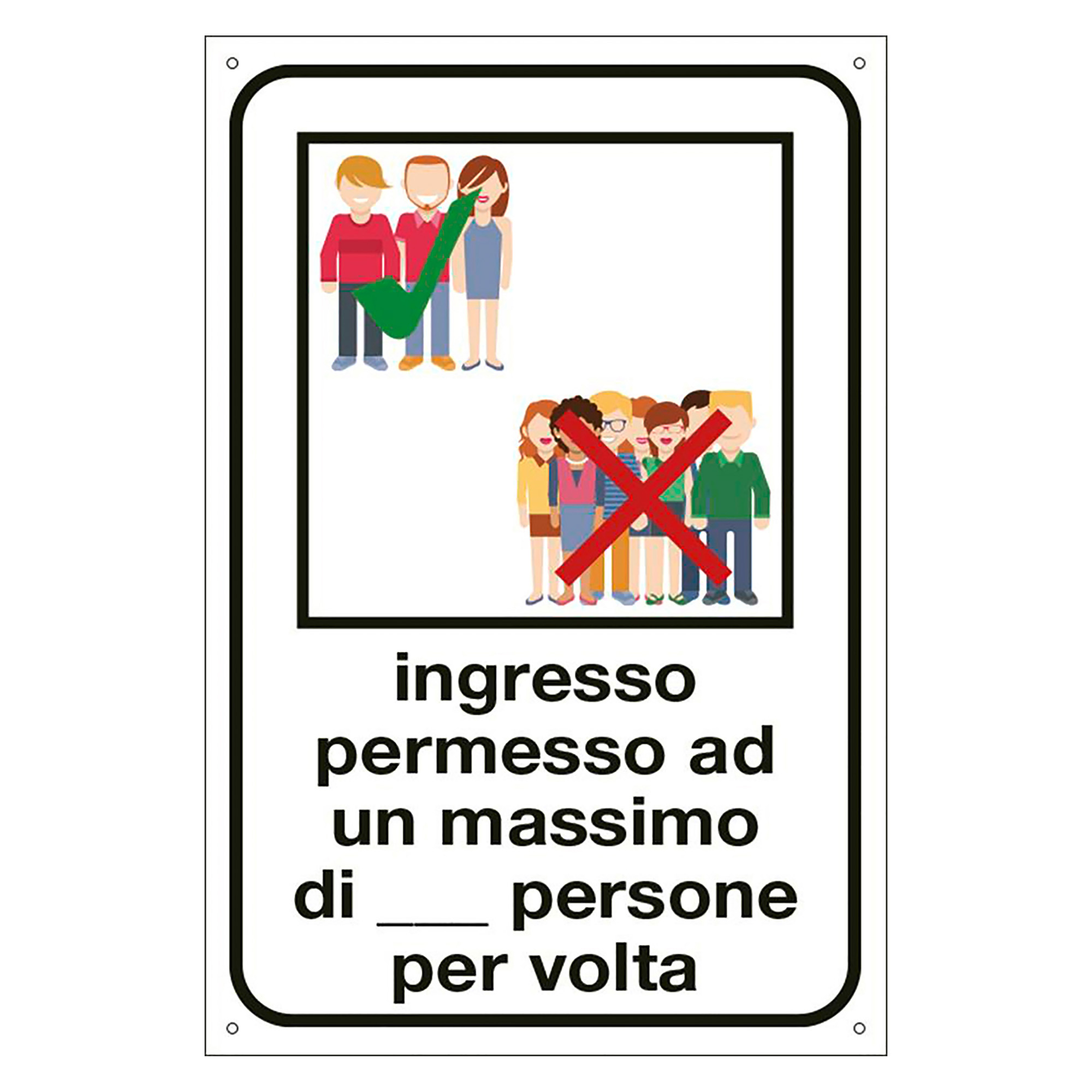 Detailled descriptionPellicola adesiva in PVC. Cartello “Ingresso permesso ad un massimo di ___ persone per volta”.