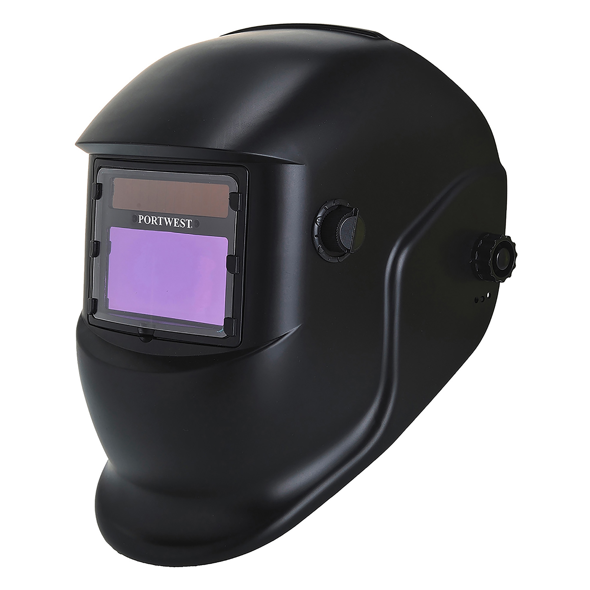 Casco per saldatura con oscuramento automatico, che passa dallo stato chiaro a quello scuro quando inizia l'attività di saldatura. Lo stato della luce è DIN 4; Lo stato di oscurità è regolabile da DIN 9 a DIN 13 mediante la manopola esterna. Il tempo di risposta dallo stato di luce a quello di buio è di 0,04 millisecondi; il ritorno dallo stato di buio a quello di chiaro avviene in 0,03-0,04 secondi. L'alimentazione è fornita da celle solari con 2 batterie al litio integrate per offrire un'alimentazione di riserva per una maggiore durata. Non è necessario sostituire le batterie.