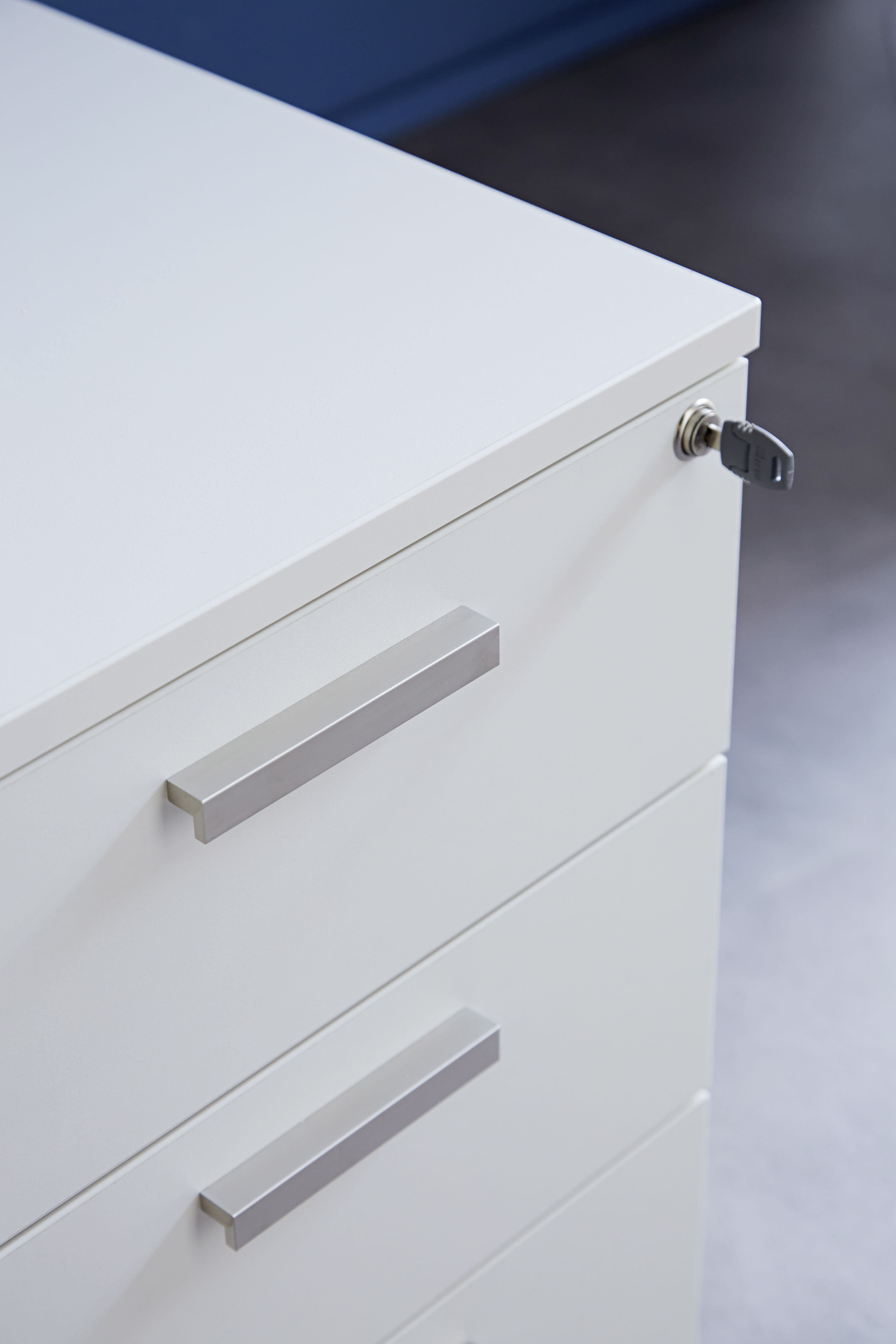 Ottimizzate l'archiviazione delle vostre cartelle con la cassettiera con ruote Eden. Realizzata in truciolato rivestito in melamina, questo modello è estremamente resistente. I cassetti sono dotati di maniglie in metallo per una facile apertura. Per una conservazione sicura, Eden è dotato di una serratura centralizzata (2 chiavi in dotazione). Le 4 rotelle mobili ne facilitano lo spostamento.