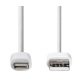 Cavo USB Apple Lightning 8 pin a USB-A maschio, placcato nickel, design tondo, materiale PVC colore bianco.