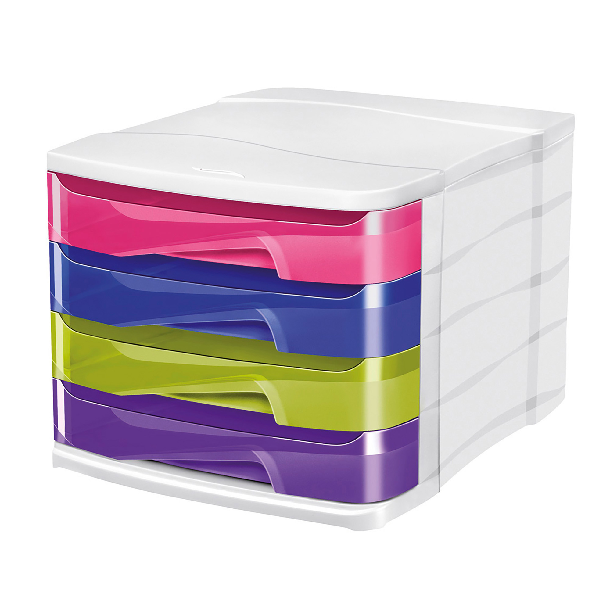 Elegant desktop unit with 4 multicolour drawers for simple colour code filing