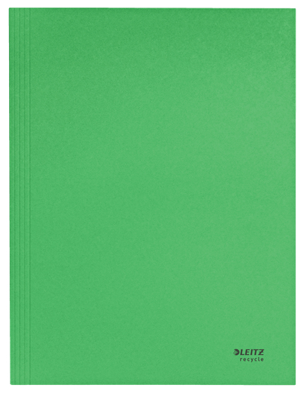Eye-catching, premium quality card 3-Flap Folder. One of the most used types of folder for document protection and transportation. With inner flaps to prevent documents from sliding out. Made from 100% recycled card, 100% recyclable and with Blue Angel environmental certification. This robust and practical folder perfectly complements other products from the Leitz Recycle range and is made to last. Modern and contemporary green stationery that will look great at home and in the office. With the eco friendly Recycle range from Leitz you can both improve your office environment – and the environment of our planet.