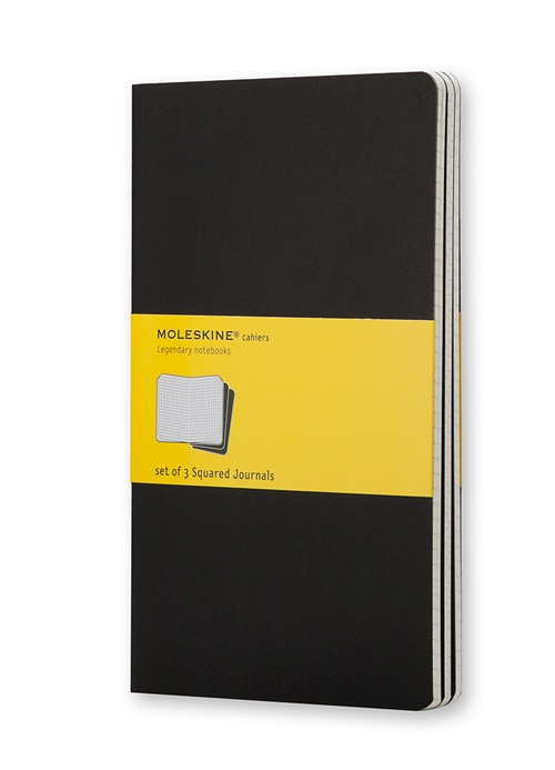 The Moleskine Cahiers are journals with a flexible heavy-duty cardboard cover in red with visible stitching on the spine.