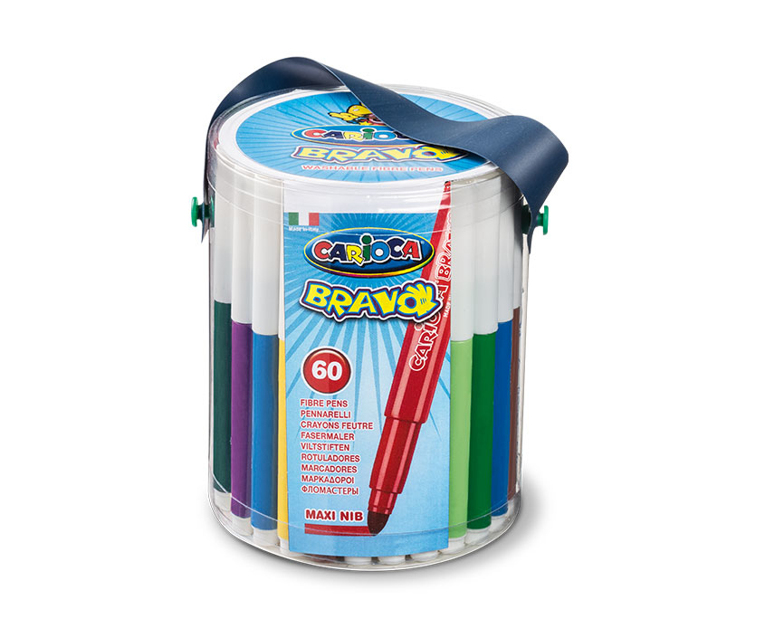 Carioca Bravo. Point type: Extra Bold, Writing colours: Multicolour, Tip type: Bullet tip. Quantity per pack: 60 pc(s), Package type: Plastic jar. Master (outer) case width: 385 mm, Master (outer) case length: 495 mm, Master (outer) case height: 170 mm