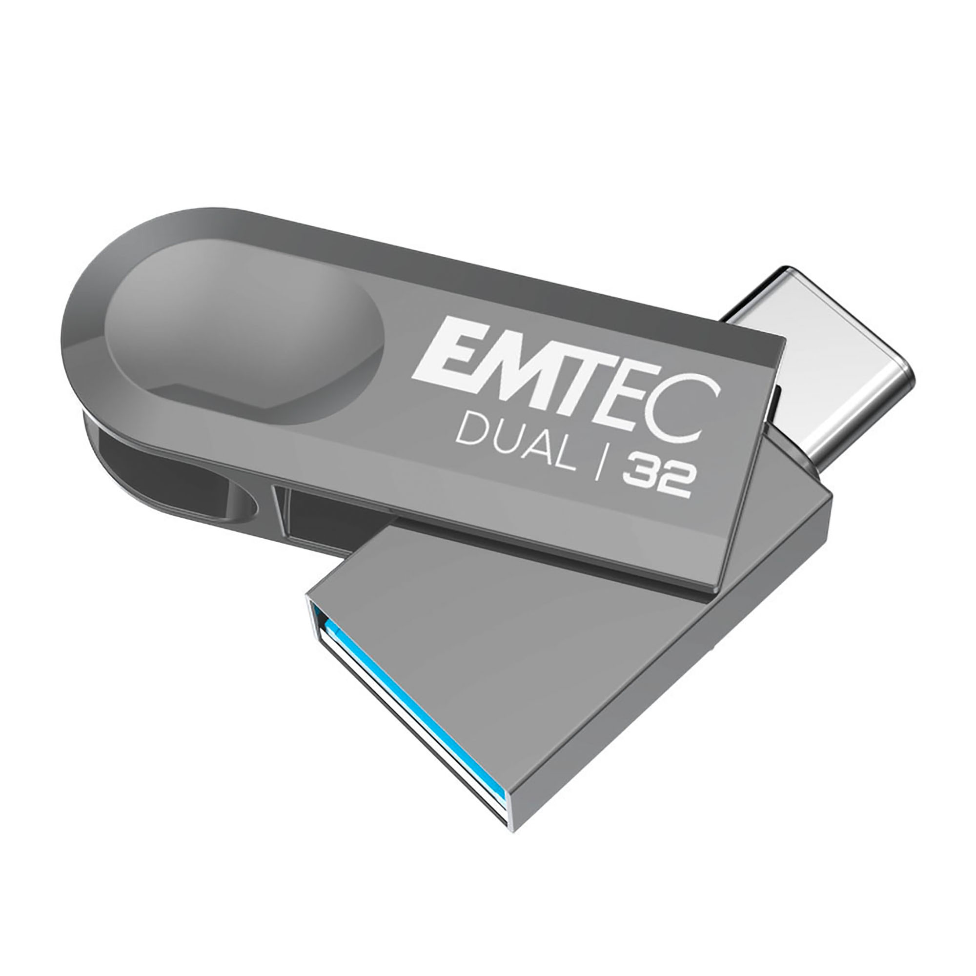 Detailled descriptionTrasferimento semplice di tutti i file da un dispositivo all'altro con l'unità D280 Dual USB-A USB-C. Esclusivo EMTEC ECO-DESIGNCustodia in plastica riciclata al 100%dual USB 3.2 girevoleDimensione del prodotto: 37 mm (USB-C aperto) e 40,3 mm (USB-A aperto)Disponibile in 32, 64, 128
