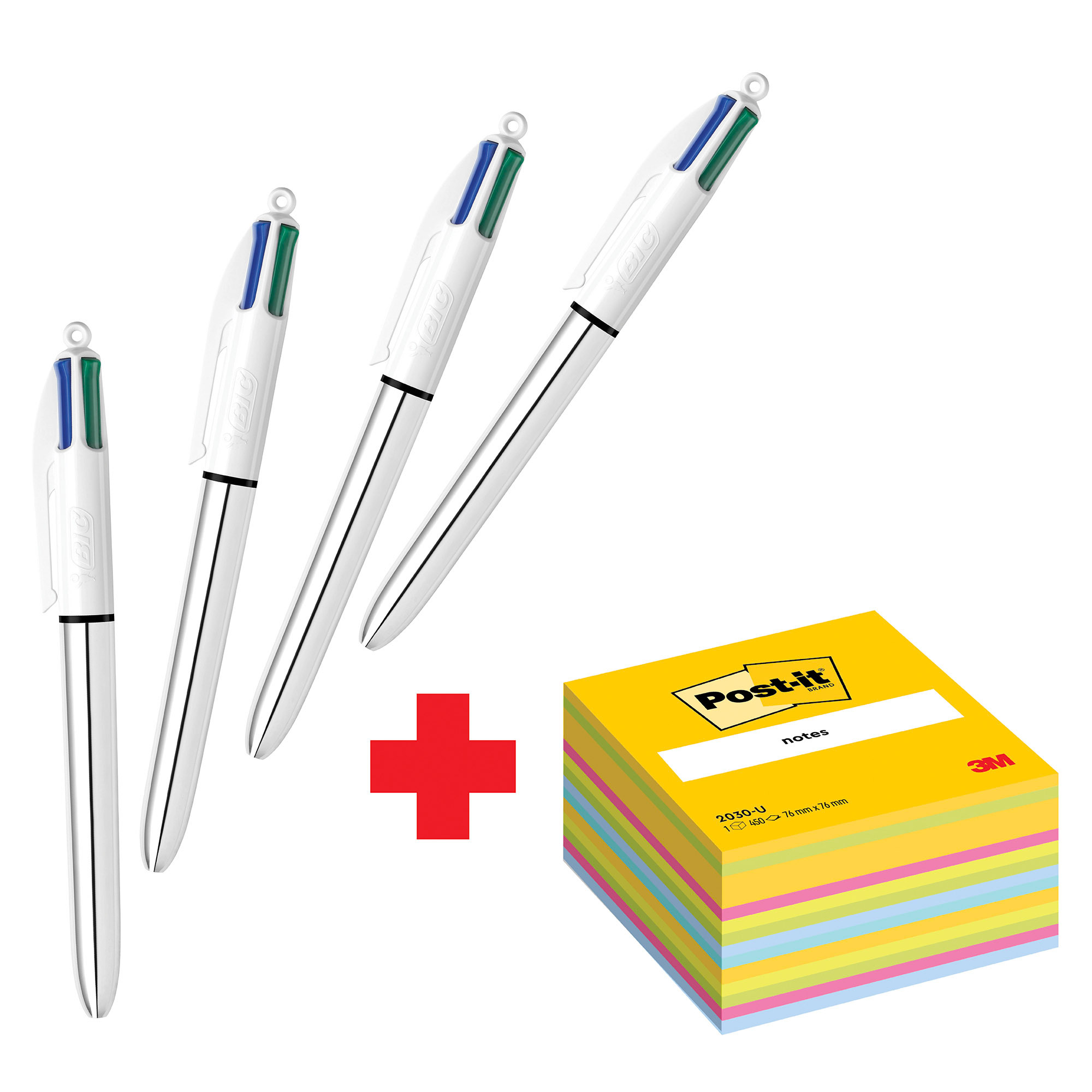 Confezione speciale 4 Penne 4 colori Shine Silver Bic e 1 cubo 76x76 mm Ultra Neon Post it