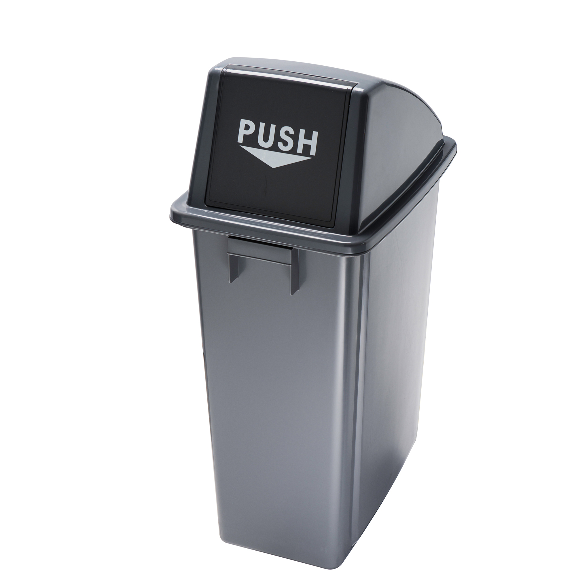 Contenitore in polipropilene ad alta densità da 60Lt con maniglie integrate. Design compatto per un facile collocamento anche in spazi limitati. Forniti con coperchio nero PUSH ad apertura frontale. Dimensioni: L 33 x P 46cm - H 79cm. Pulizia periodica da effettuare con un panno morbido e non abrasivo, imbevuto d’acqua. Detergenti che contengono solventi possono danneggiare il materiale.