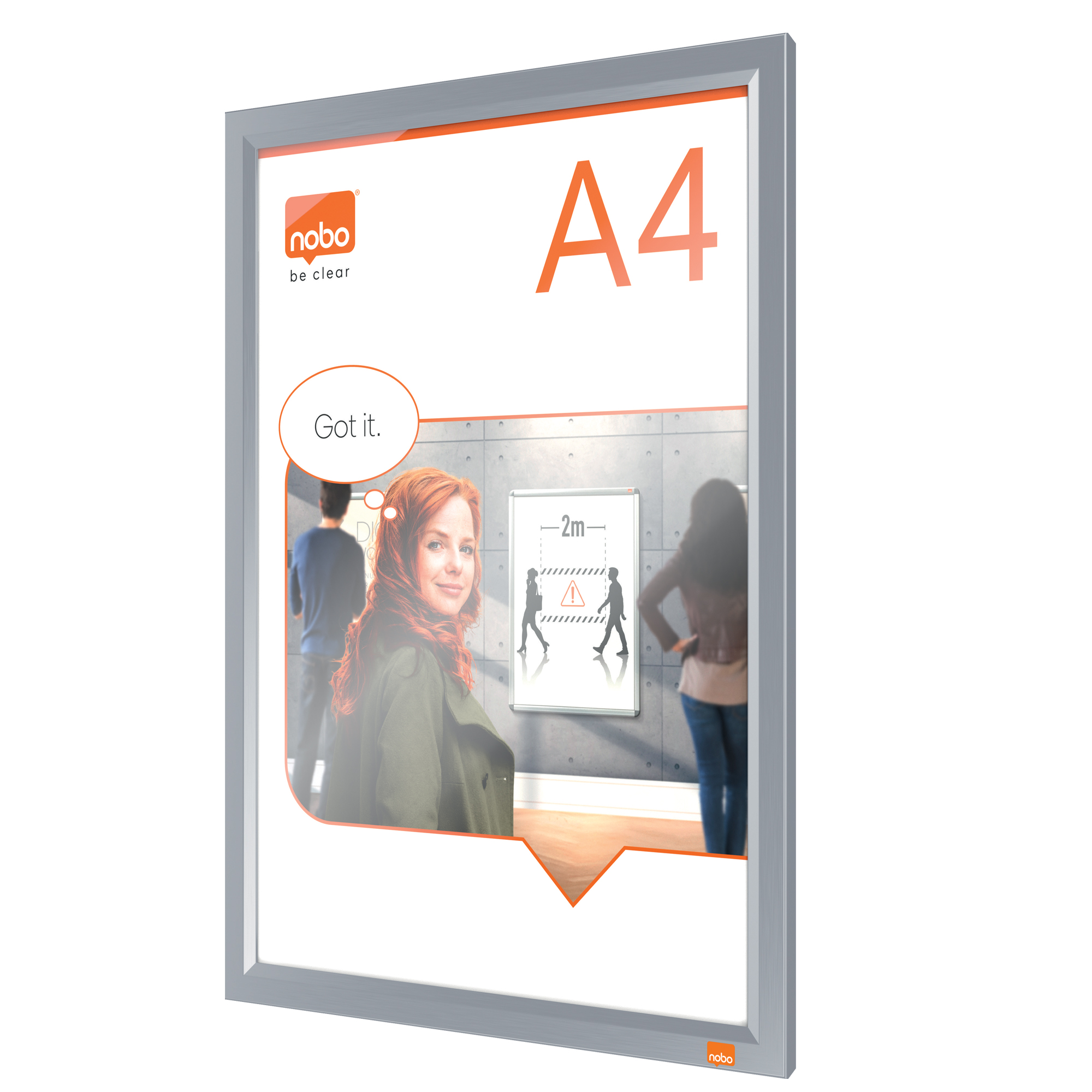 Detailled descriptionQuesta soluzione per la segnaletica, stabile e sicura, ha un pannello posteriore che si attacca saldamente al muro con montaggio ad angolo e ti permette di sostituire il contenuto senza rimuovere la cornice dal muro.