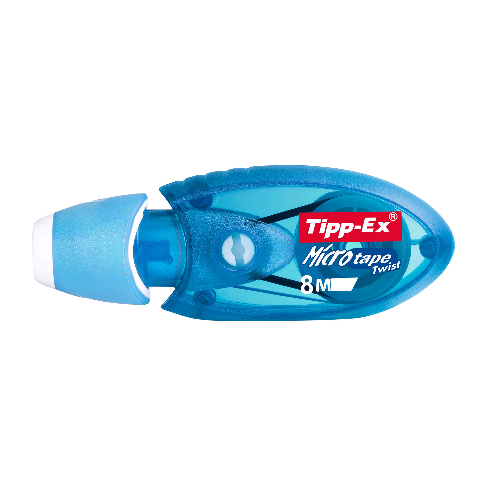 Tipp-Ex correction roller Microtape Twist. The patented rotatable head protects the tape. Disposable, good coverage and immediately rewritable. Tape dimensions (L x W): 8 m x 5 mm. Colour: blue, orange.