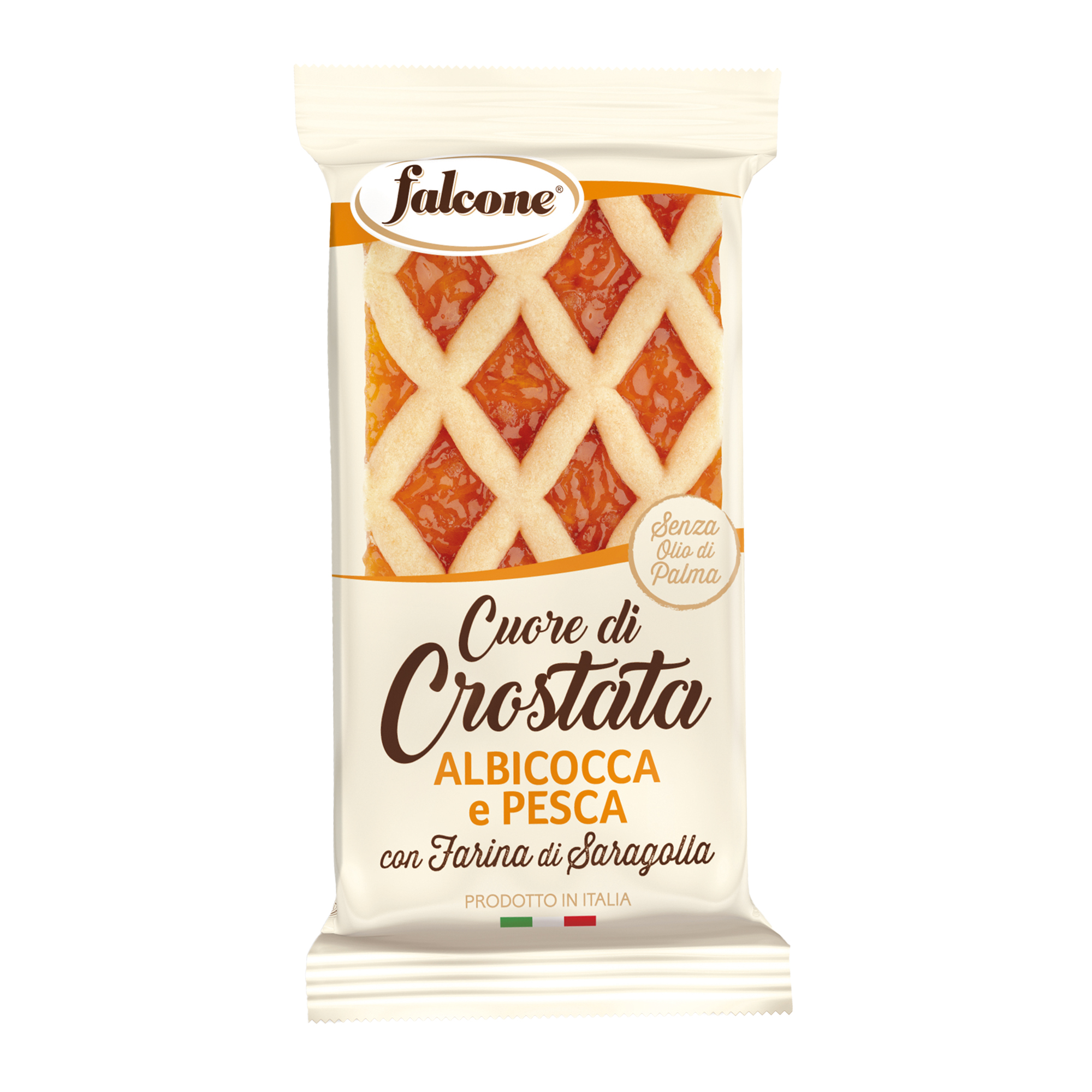 Detailled descriptionCuor di crostata con farcitura di albicocca e pesca, con farina di saragolla. In pratica monoporzione da 60gr.