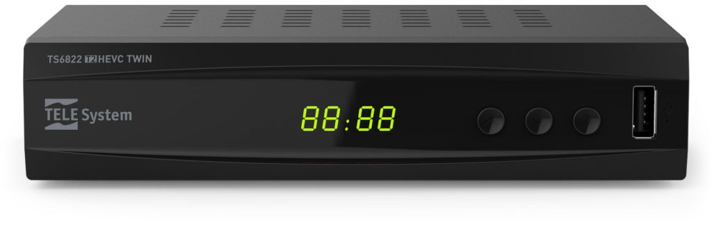 TELE System TS6822 T2HEVC TWIN. Signal source: Cable, HD type: Full HD, Digital signal format system: DVB-T, DVB-T2. Video formats supported: AVC, H.265, HEVC, MPEG2, MPEG4. Product colour: Black, Tuner type: Digital, Number of tuners: 1 tuner(s). Display type: LCD. Width: 154 mm, Depth: 100 mm, Height: 30 mm