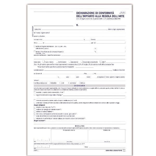 Detailled descriptionDichiarazione di conformità dell’impianto alla regola dell’arte50 schede SNAP OUT a 5 copie autoricalcanti