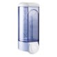Fondo e coperchio realizzati in ABS antiurto bianco, corpo in materiale trasparente.
