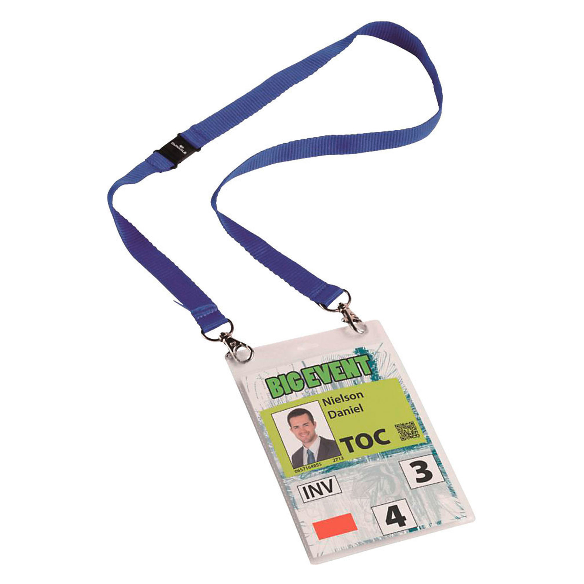 With extra-large labeling area for more information, such as names, logos, pictures, bar codes, club or position name, country code, etc. Textile strap with two snap hook and safety lock. Textile strap with two snap hook for attachment to lateral perforations ensures permanent legibility of the information. These badges come in a handy pack of 10 pieces, so you have enough for a few visitors.