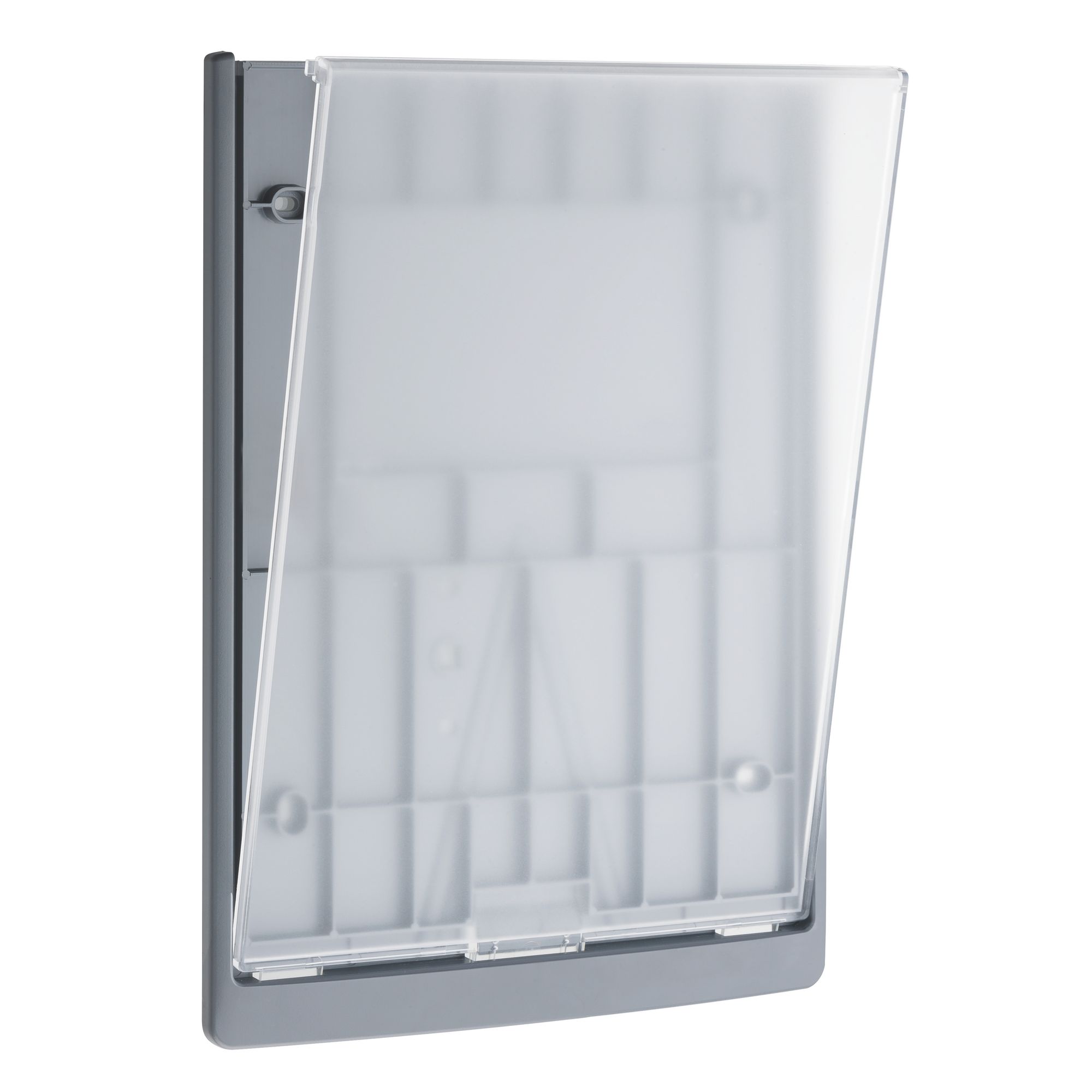 This Durable (486,737) graphite sign is designed so you can easily change the page it holds just simply click it down and it will pop open enabling you to replace the content, It is for A4 format pages.