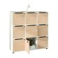 Bookcase with 3, 6, or 9 compartments in two finishes: white or aluminum, available as open units or with lockable doors.